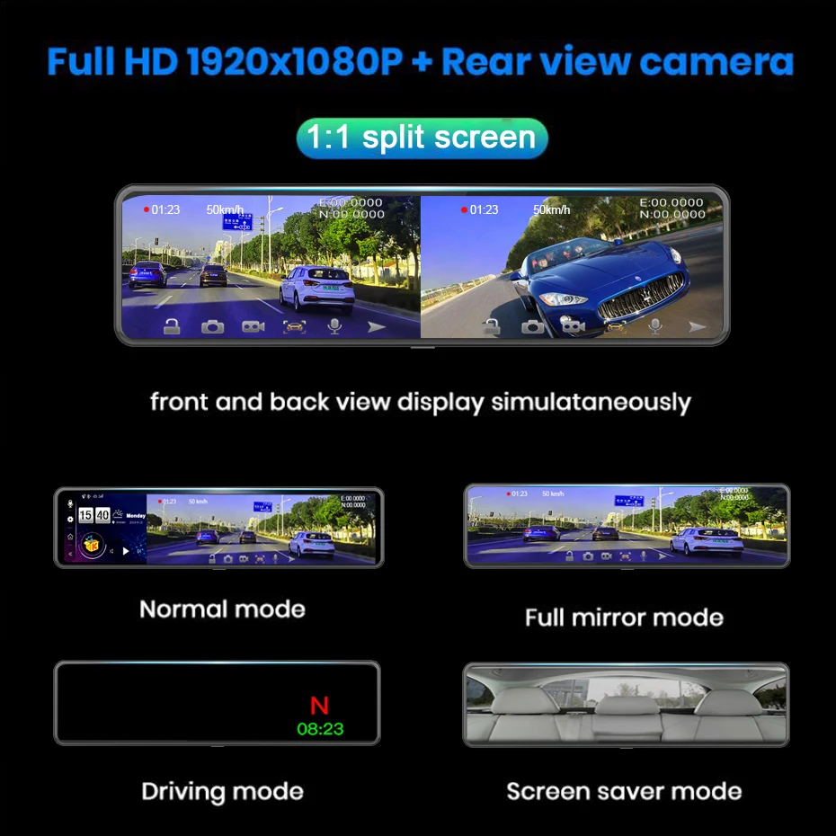 Видеорегистратор-зеркало заднего вида, Автомобильный регистратор 12...