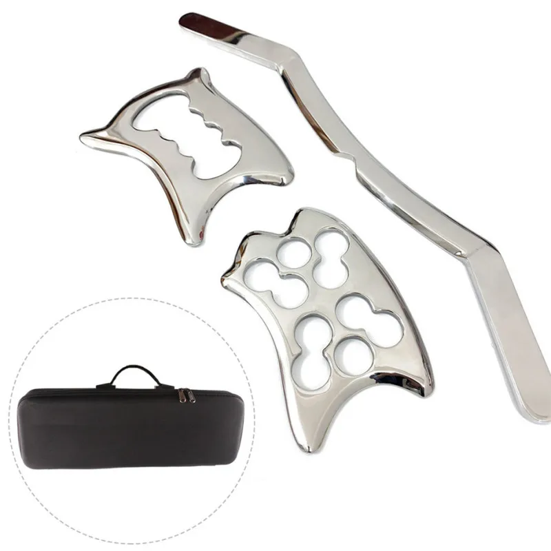 Комплект из 3 предметов; Нержавеющаясталь гуаша соскальзывание массажа IASTM инструмент поможет облегчить боль в мышцах отличные инструменты Миофасциальный Релизнабор для ухода за телом