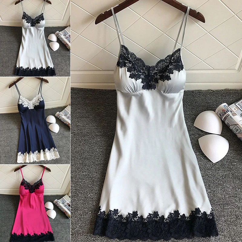 Женское сексуальное нижнее белье, шелковая ночная рубашка, летнее кружевное Ночное платье, ночная рубашка, атласная ночная рубашка для сна