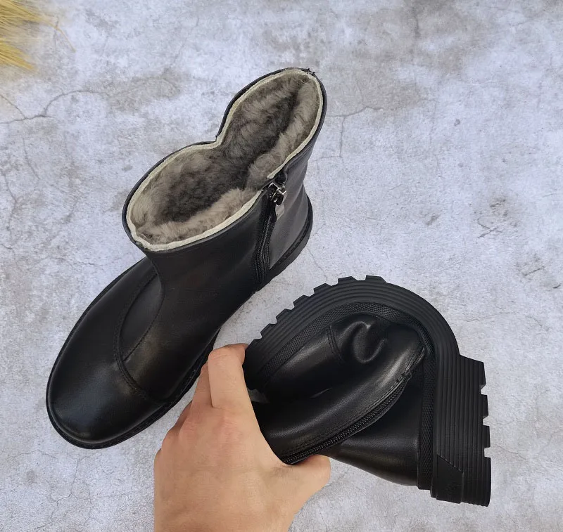 Ботинки женские зимние из натуральной кожи, на толстой платформе, теплые, 100%