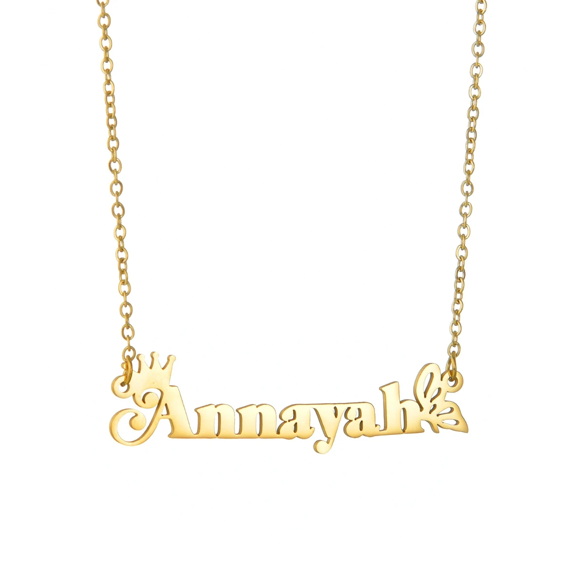 Название: Goxijite персонализированное имя колье ожерелье для девочки Женщины из нержавеющей стали бабочка Корона Письмо имя Подвеска ожерелье подарок