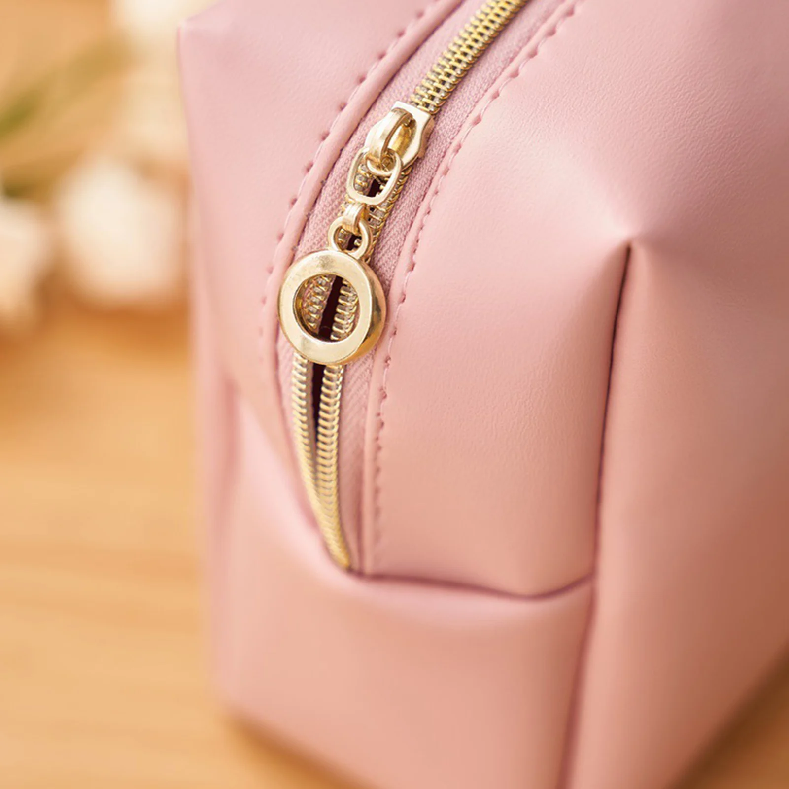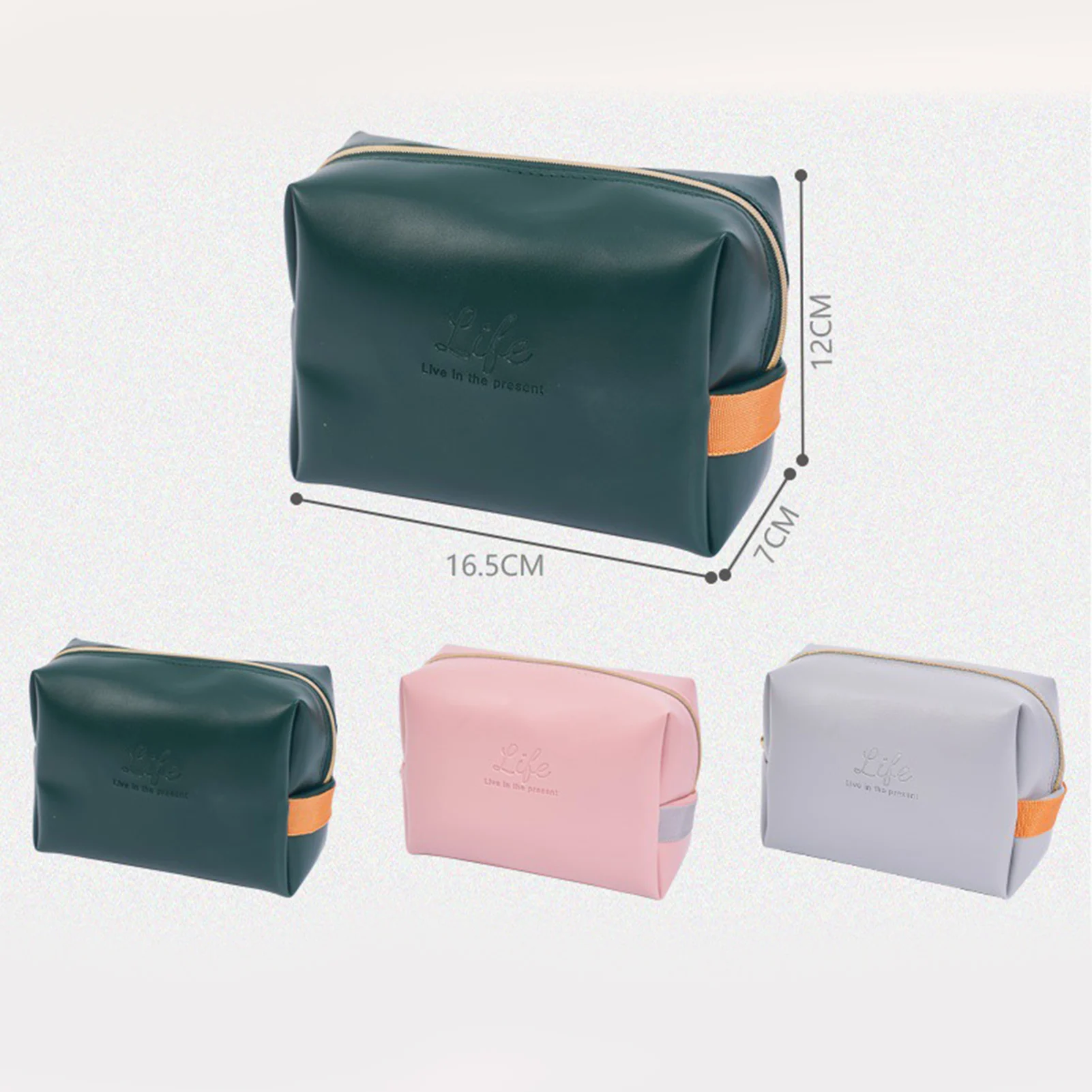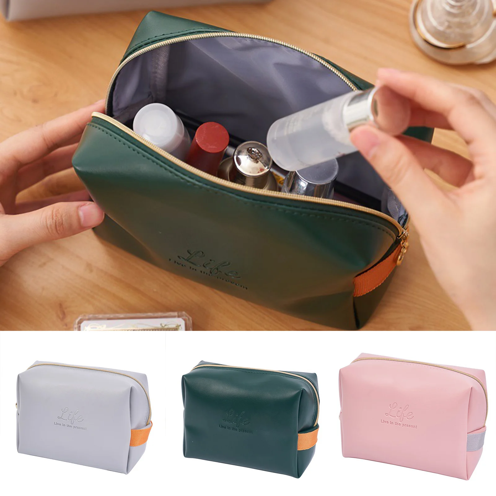 Косметичка из искусственной кожи 16,5*7*12 см, водонепроницаемая сумка для хранения, зеленая, серая, розовая дорожная сумка с молнией