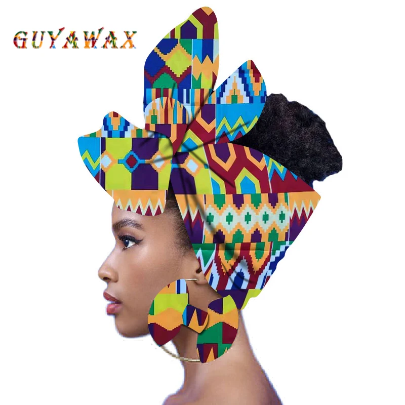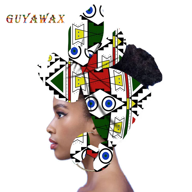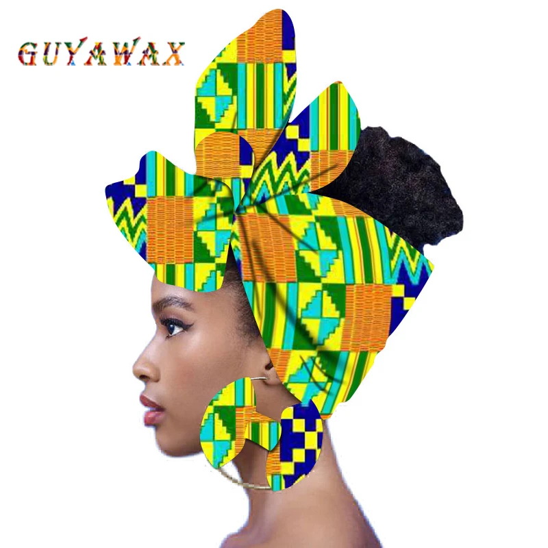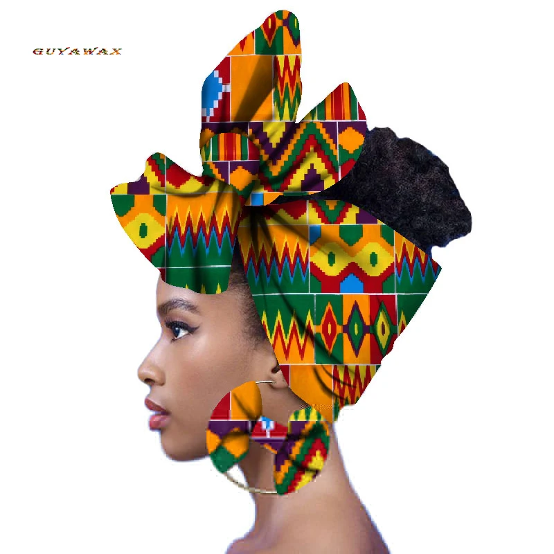 Модный шарф и серьги в африканском стиле, комплект из 2 предметов, женская одежда в африканском стиле, богатый головной убор Bazin, повязка на голову из воска Анкары, 2020