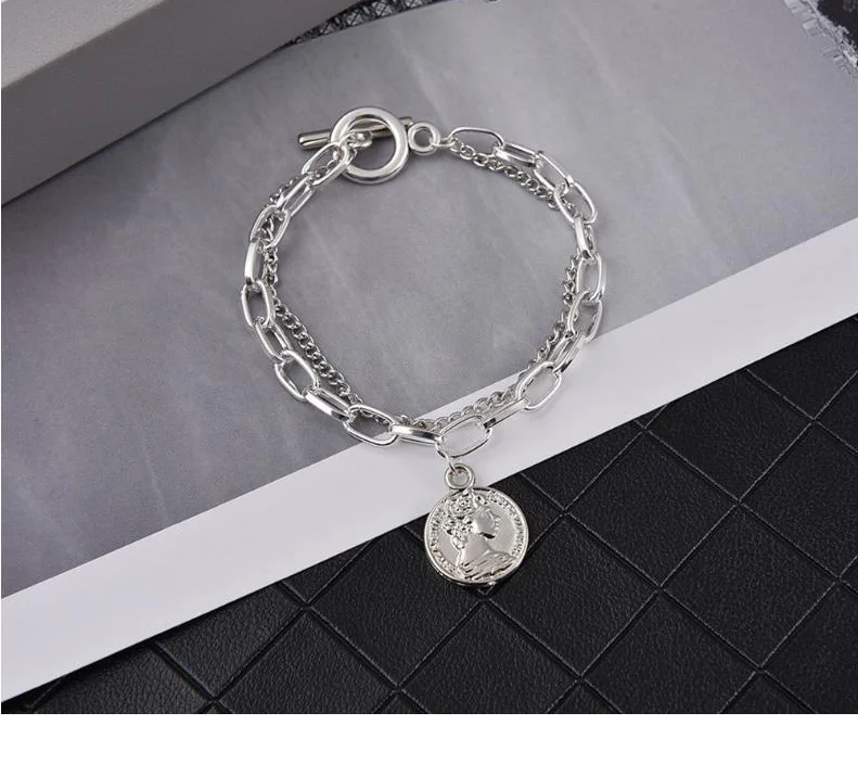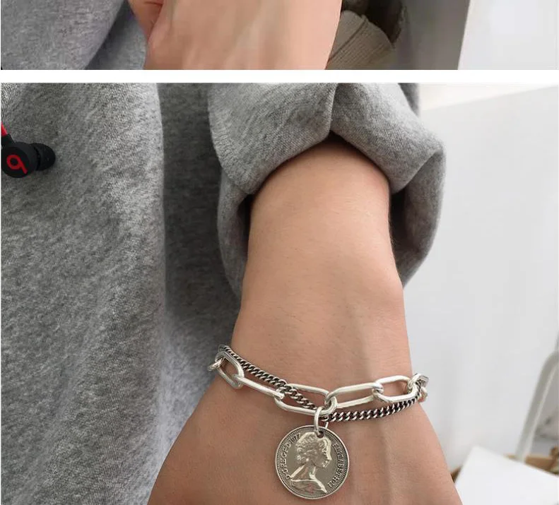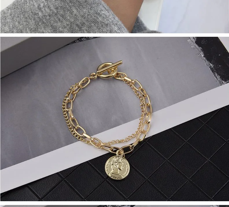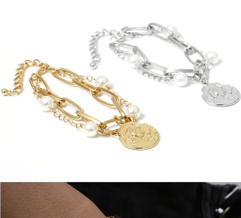 Панк браслеты резные монеты браслет богемный круг королева толстая цепочка кисточка кулон браслеты на руку женские украшения