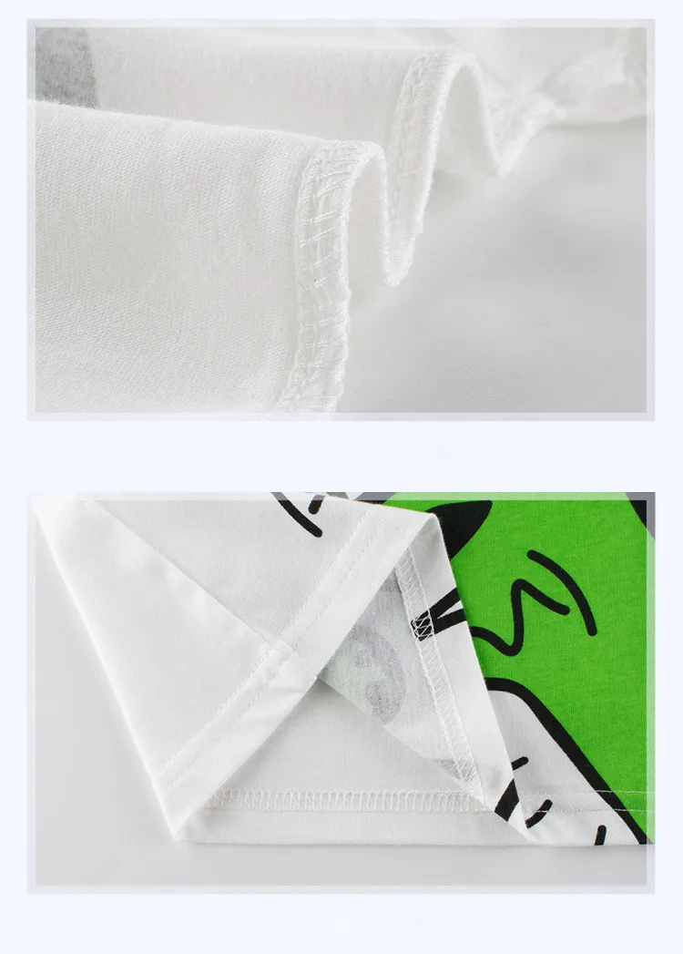 Название продукта: детские короткие футболки с динозаврами Основной материал: хлопок Цвет: как показано на фото Возраст: 1-8 лет Размер: 90-100-110-120-130-140 Посылка 1 лот = 1 комплект = 1 футболка