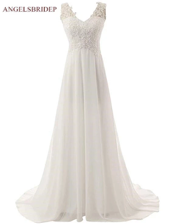 Сексуальное платье с v-образным воротом, Пляжные Свадебные платья Vestidos De Novia шифоновая аппликация со шлейфом средней длины на бретелях официальные свадебные платья Лидер продаж