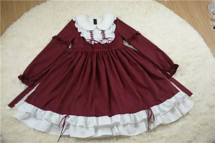 Платье в японском стиле Лолиты, милое красное свободное платье с длинными рукавами для студентов, милая одежда, весна-лето 2021