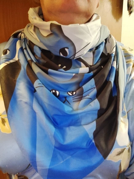 ужасный платок! размер не соответствует, рисунок огромный, не видно на шее.