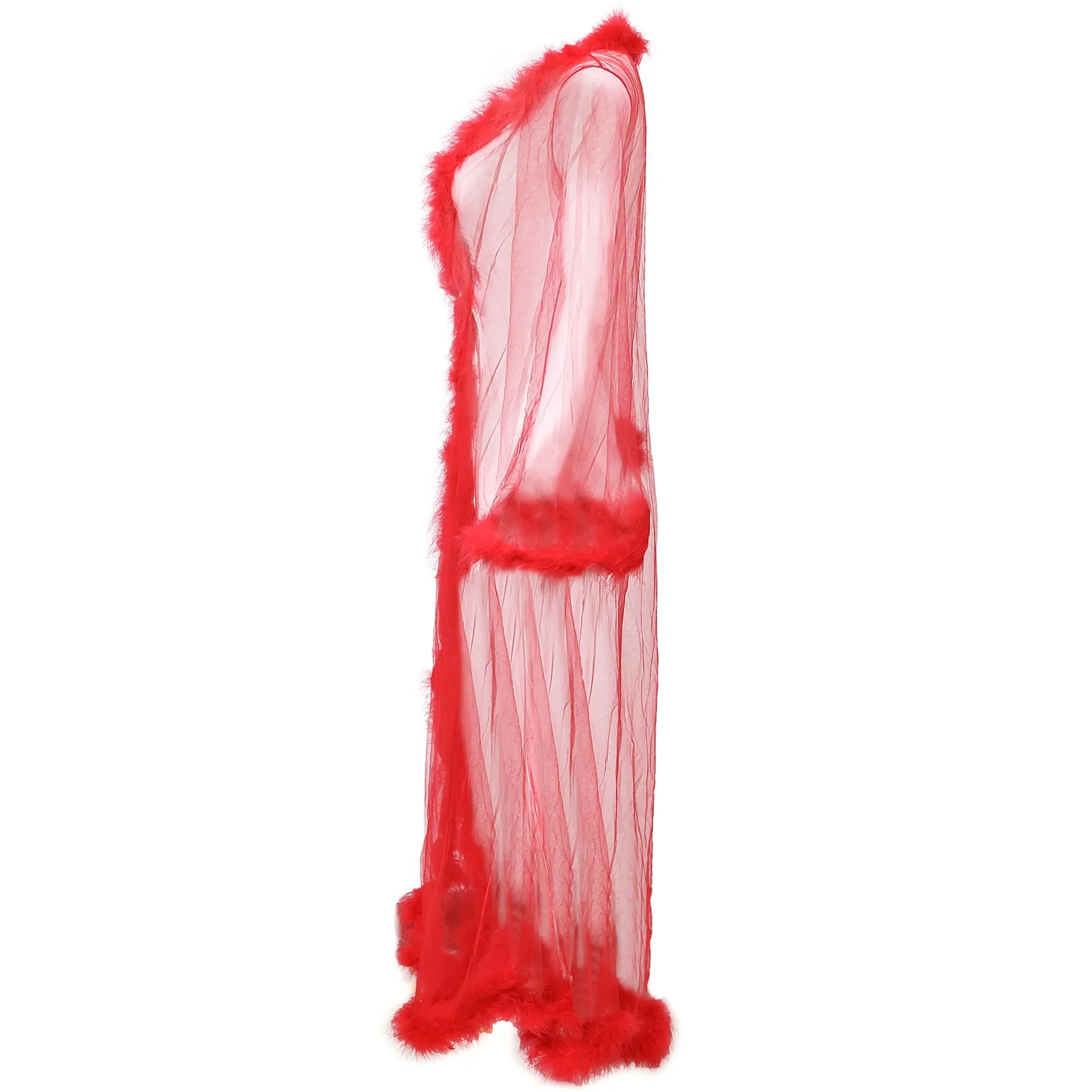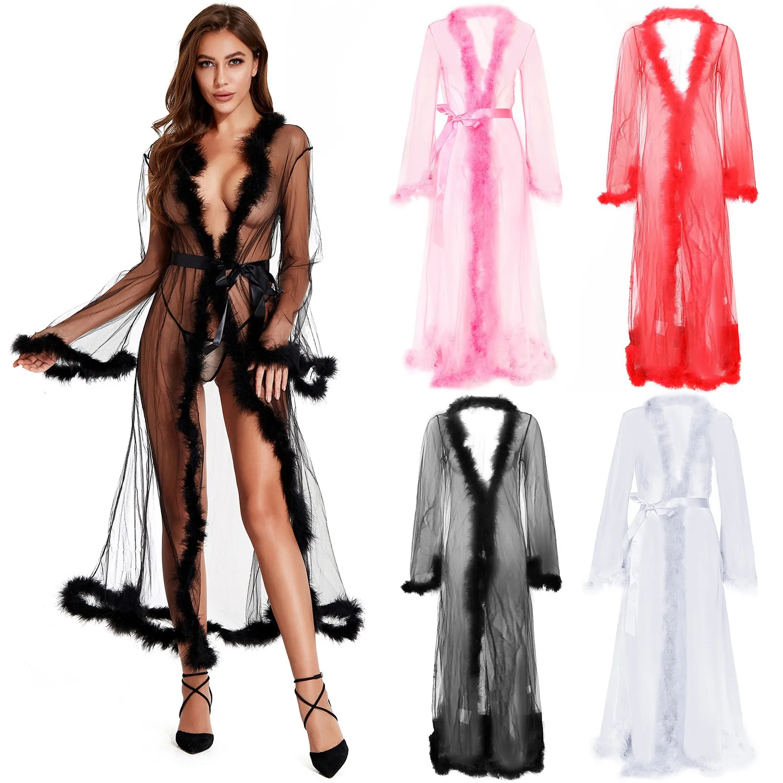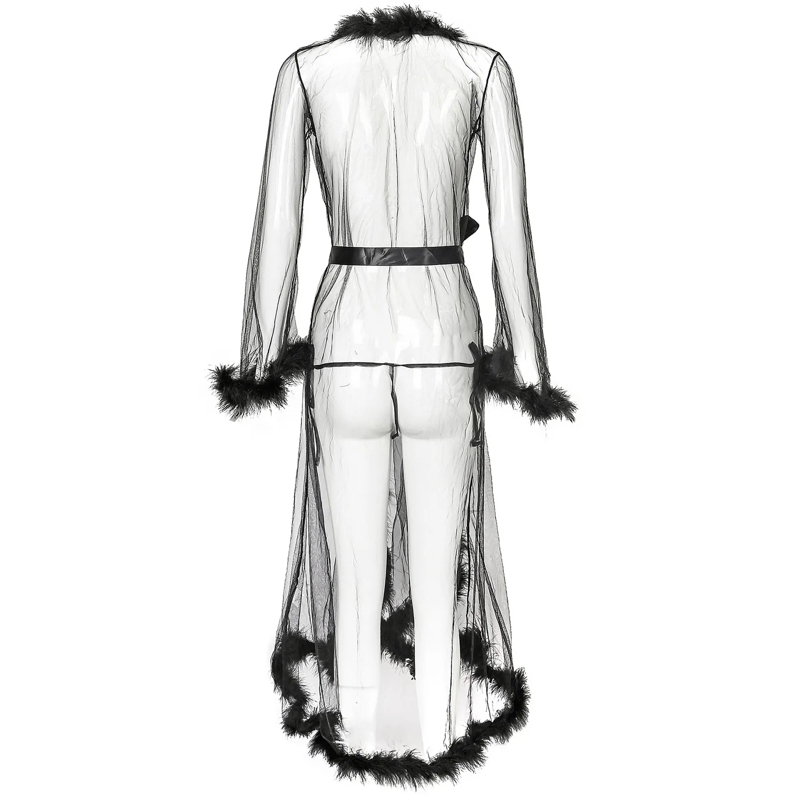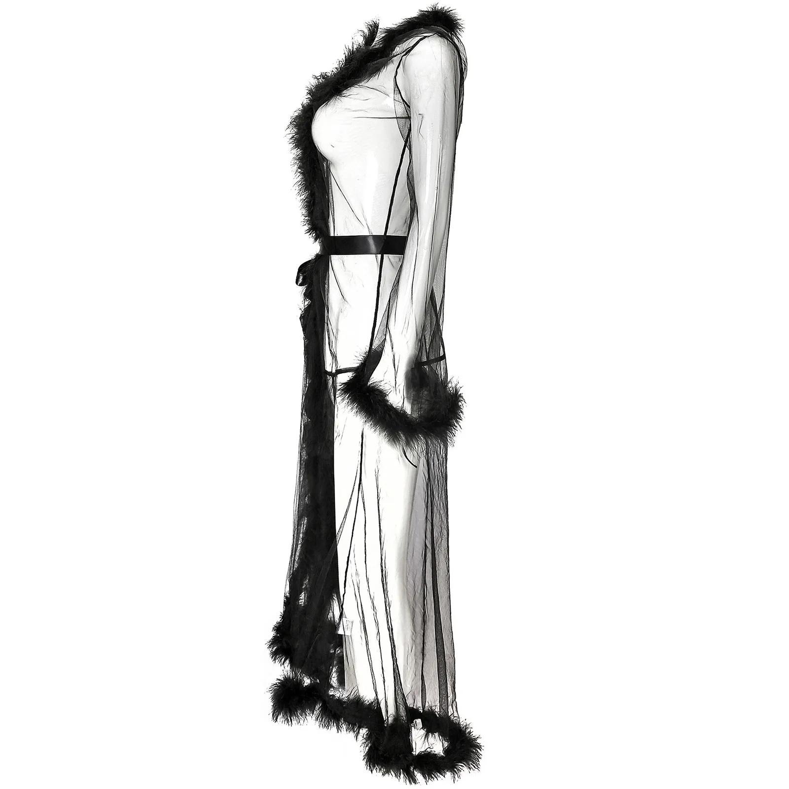 Женское сексуальное модное Ночное платье, женская прозрачная ночная рубашка с перьями, 2020, женские кружевные длинные ночные рубашки, одежда для сна #3