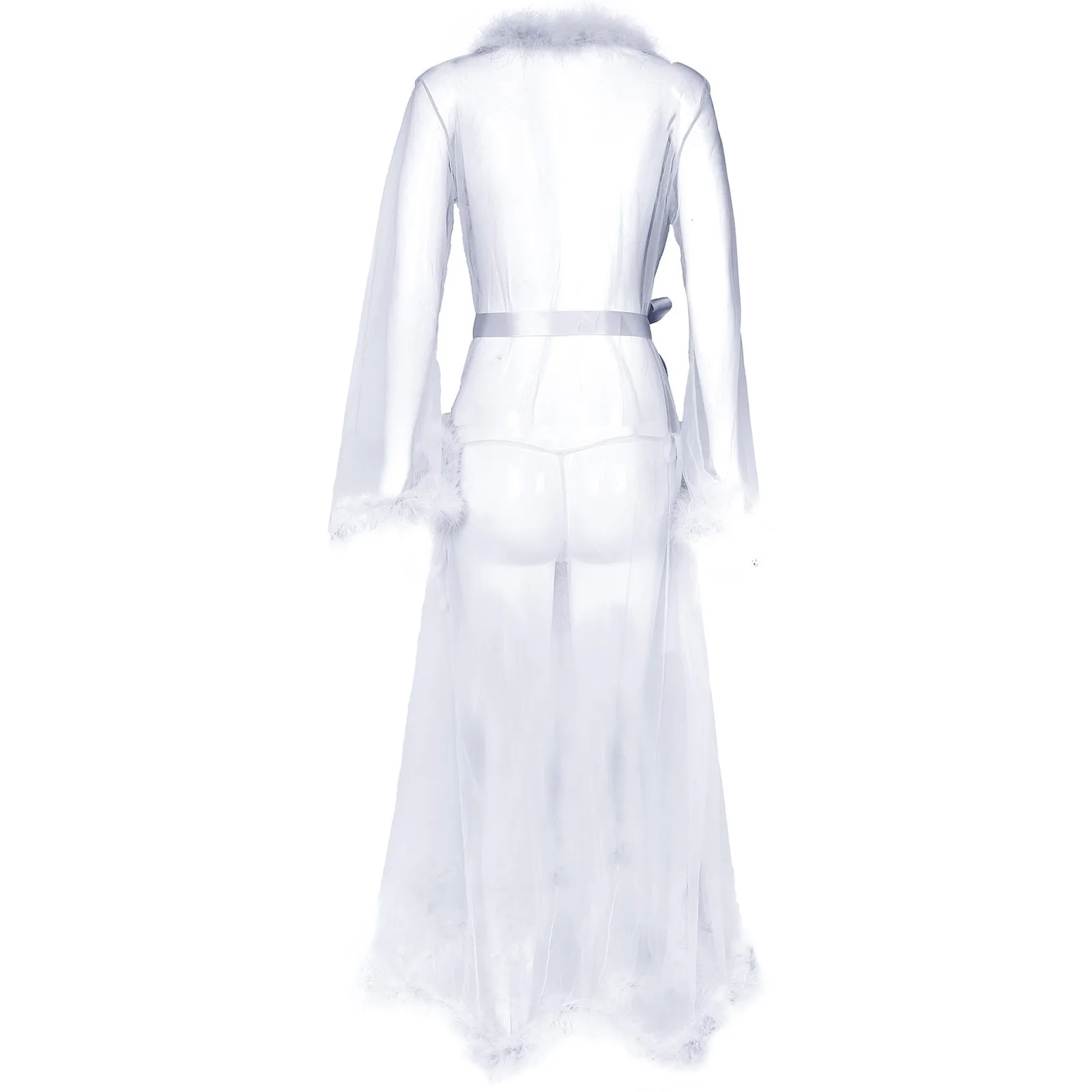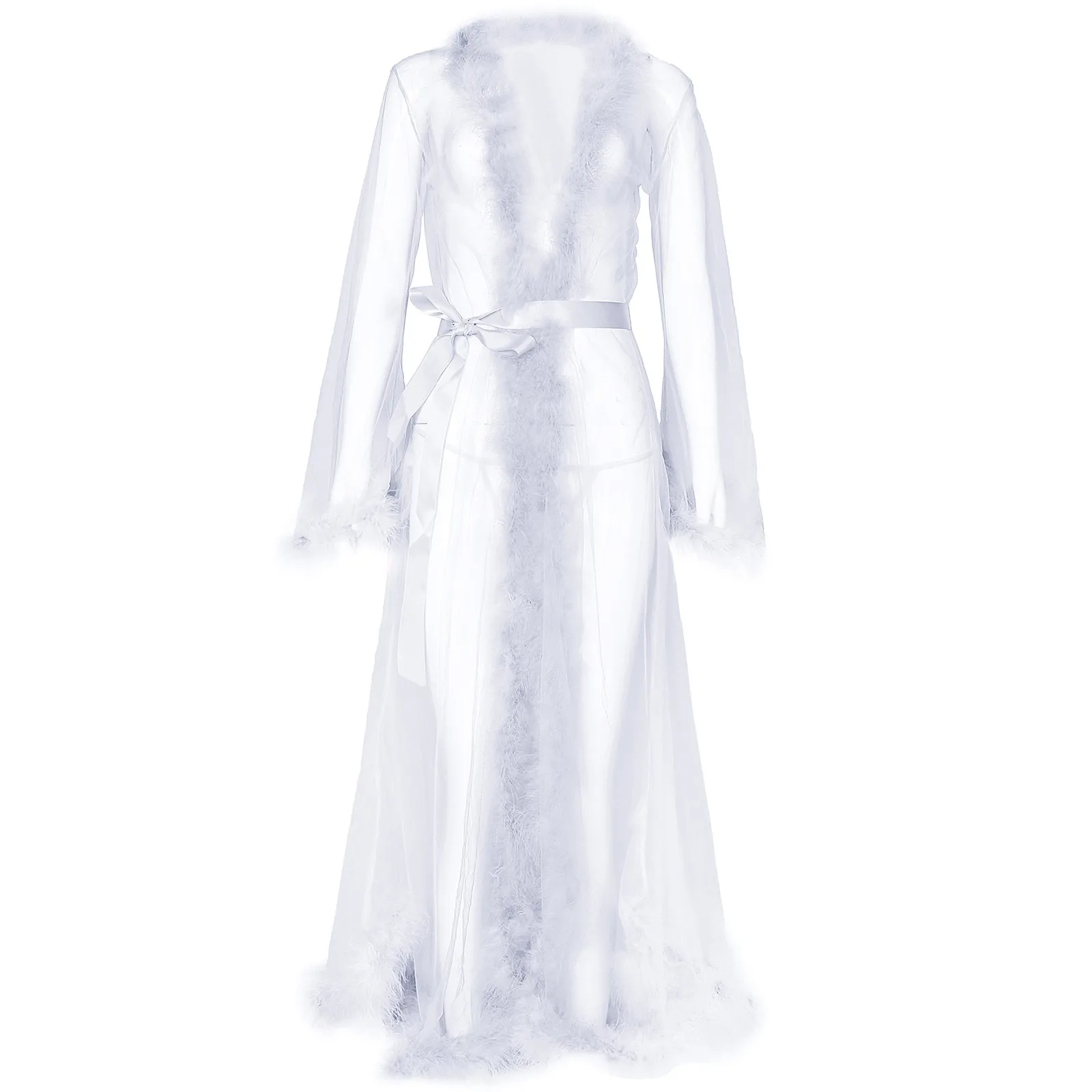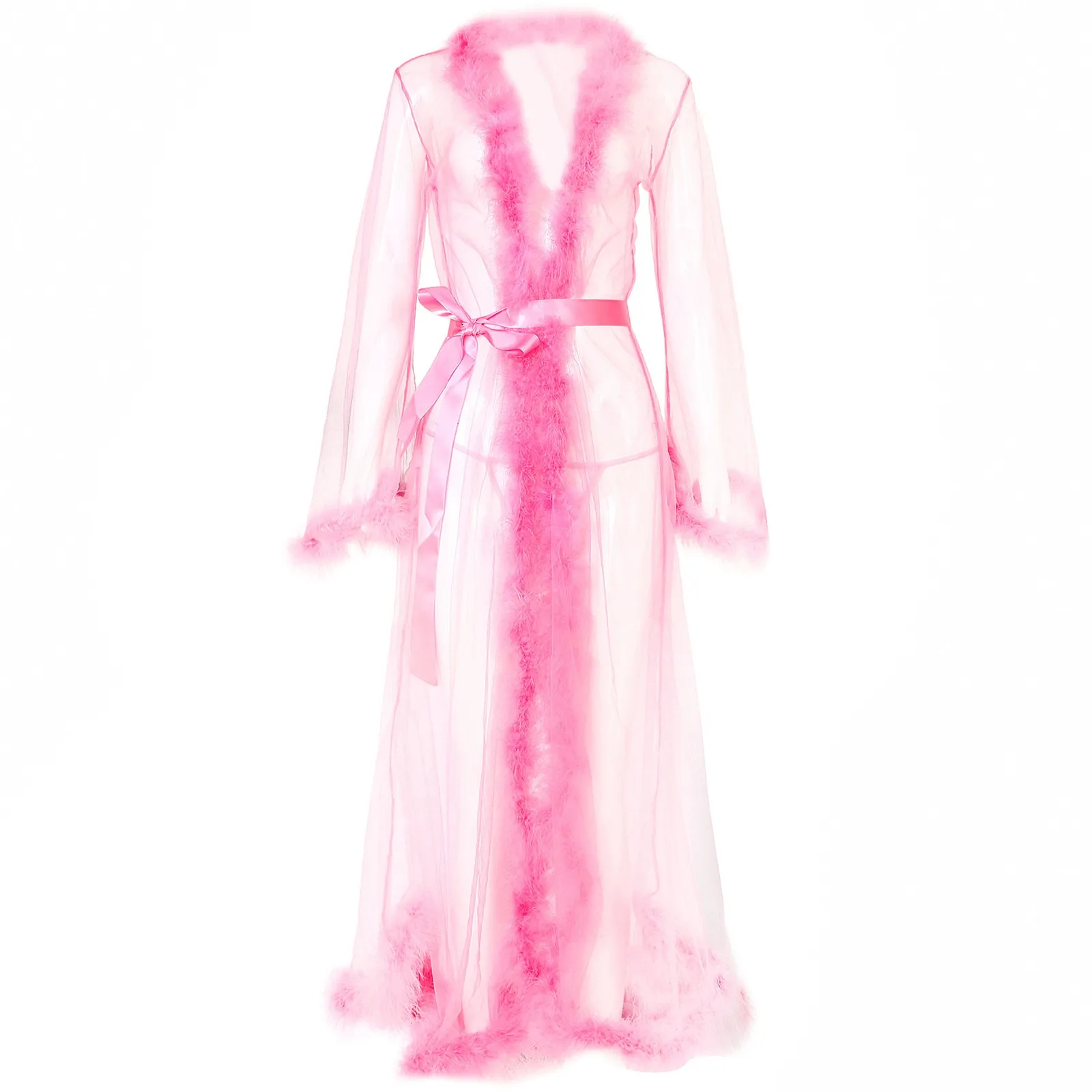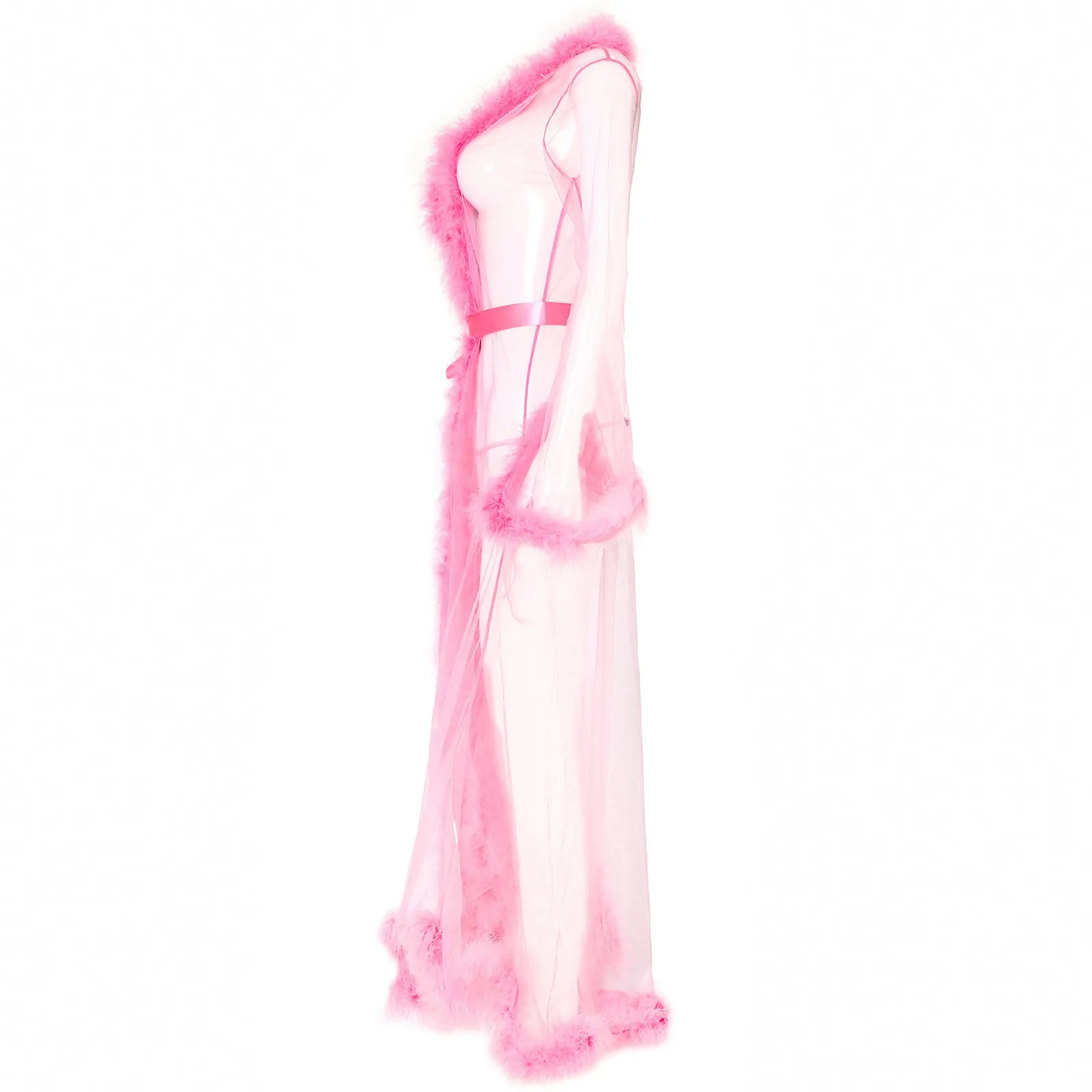 Женское сексуальное модное Ночное платье, женская прозрачная ночная рубашка с перьями, 2020, женские кружевные длинные ночные рубашки, одежда для сна #3