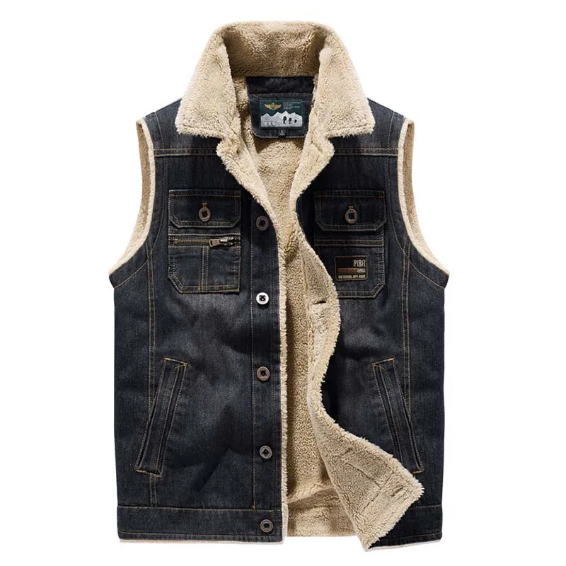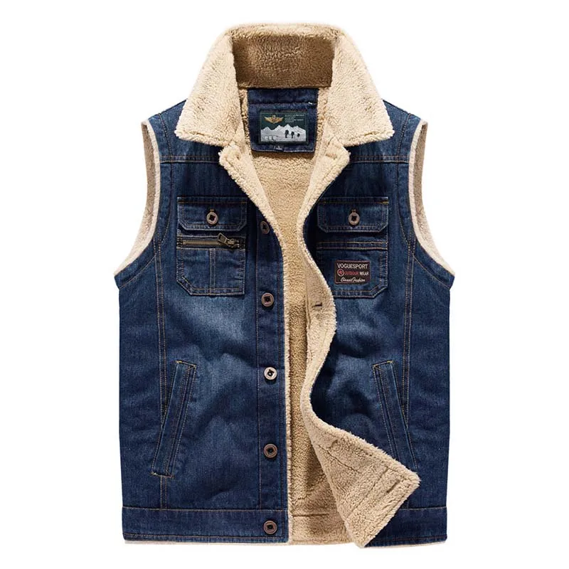 Mcikkny зимние мужские теплые джинсовые жилеты с несколькими карманами, повседневные безрукавки для мужчин, верхняя одежда, размер M-4XL, ветровка