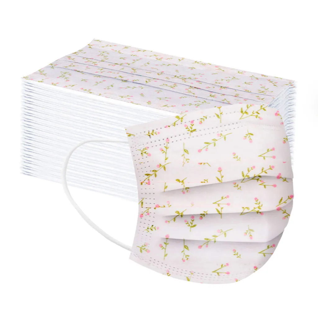10-100 шт., одноразовые нетканые маски для лица с цветочным принтом