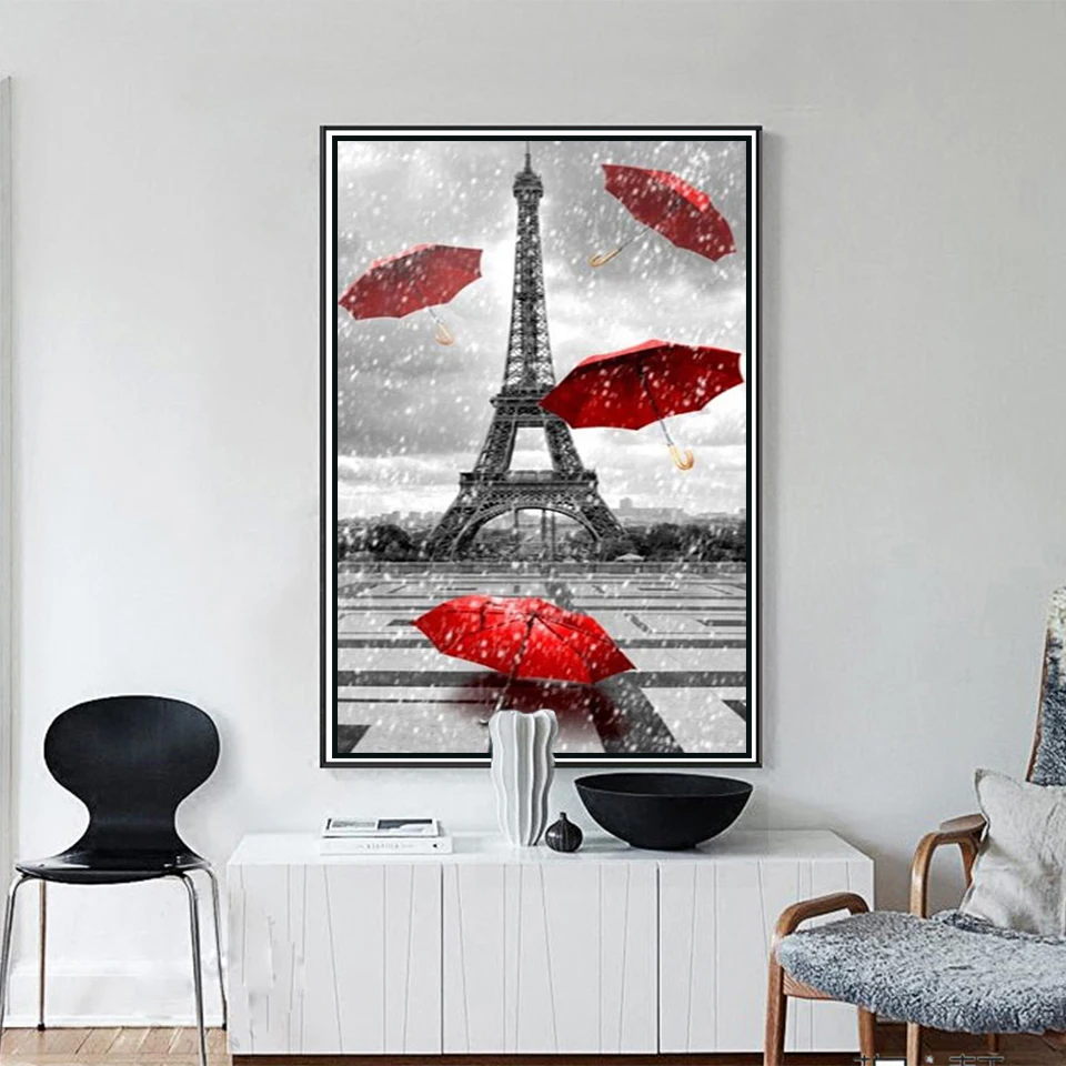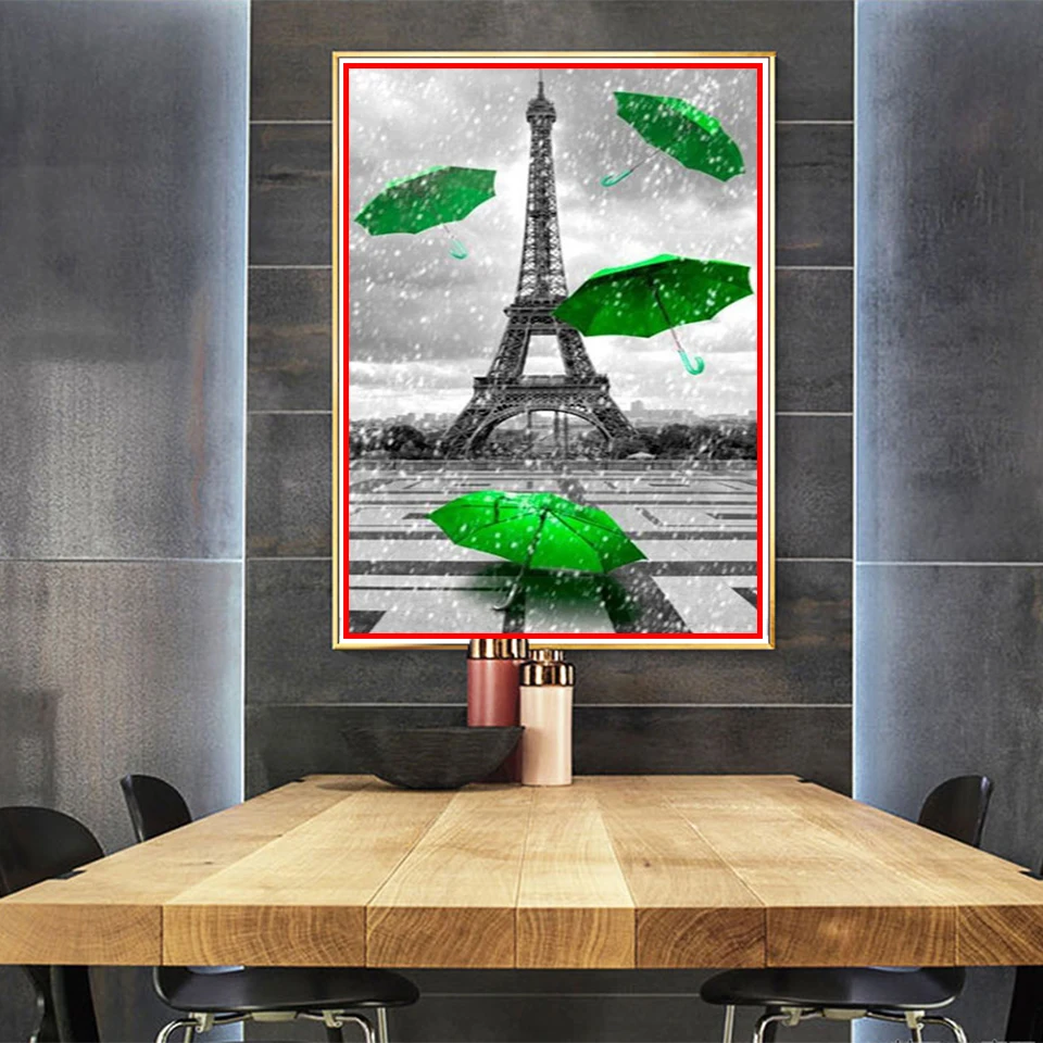 Алмазная 5D живопись сделай сам, картина с изображением пейзажа, Эйфелевой башни стразы, полноразмерная вышивка, мозаика, наклейки для украшения дома