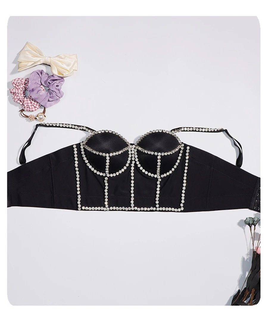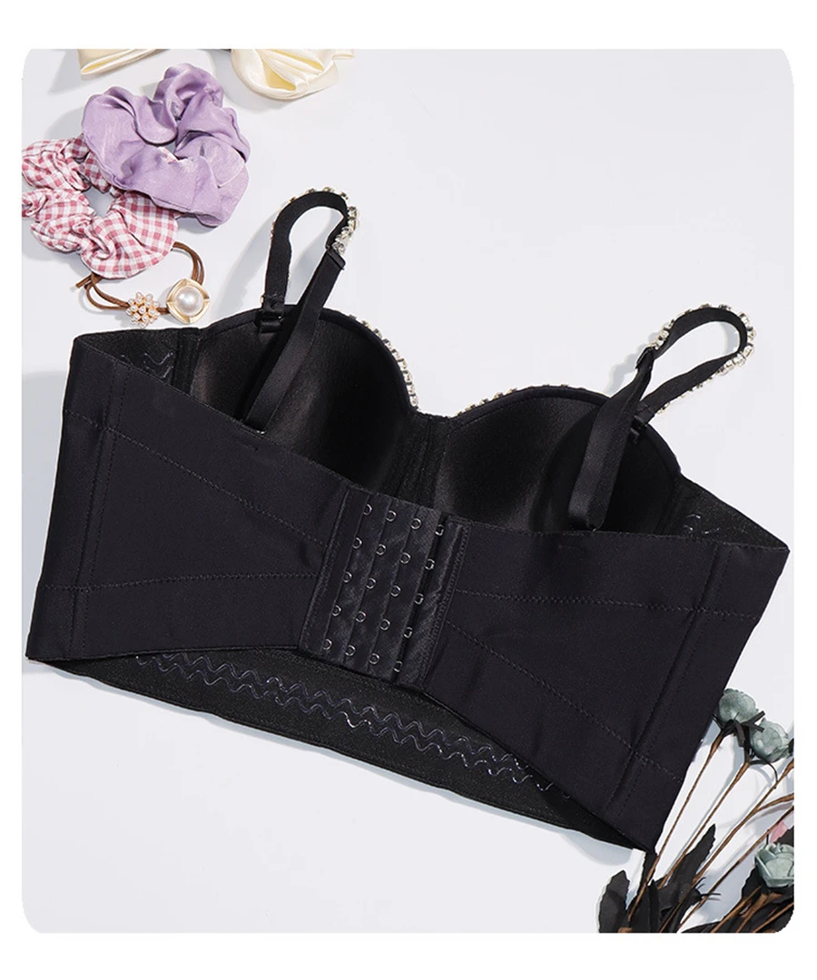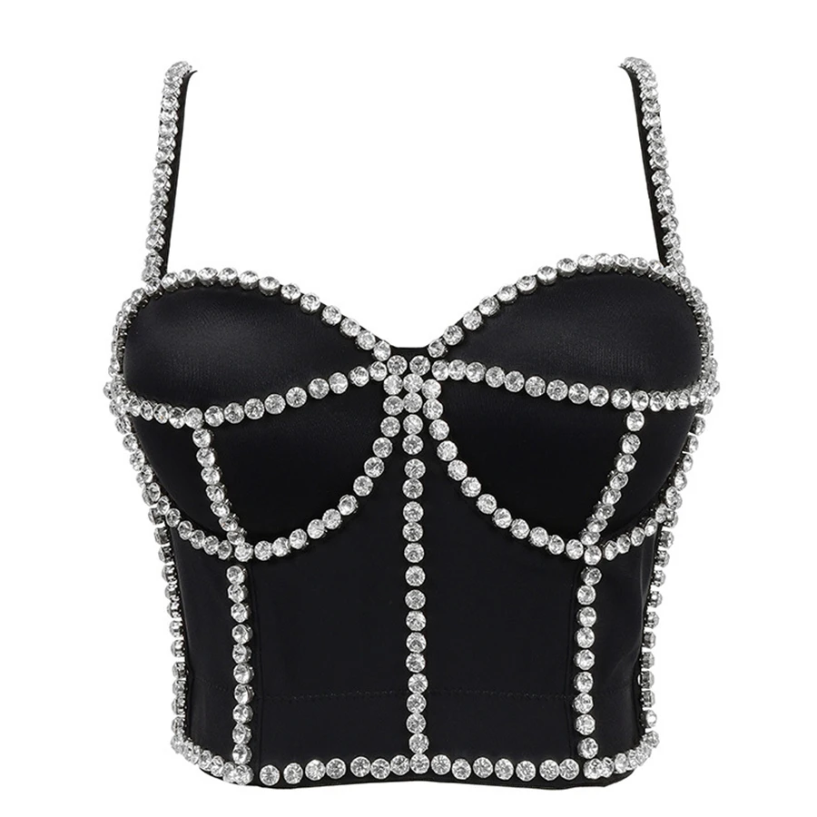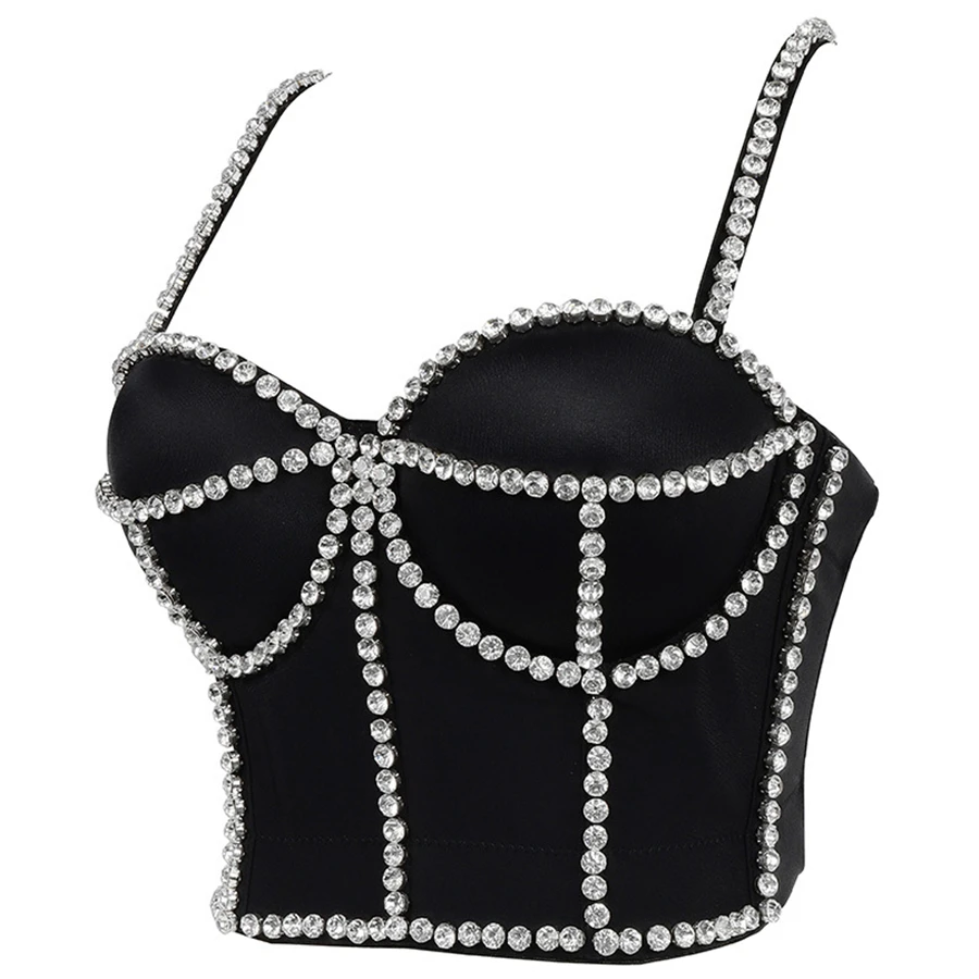Топ Стразы со встроенным бюстгальтером, Бралетт с чашками пуш-ап без рукавов, Женская майка с открытыми плечами, пикантная летняя одежда для ночного клуба