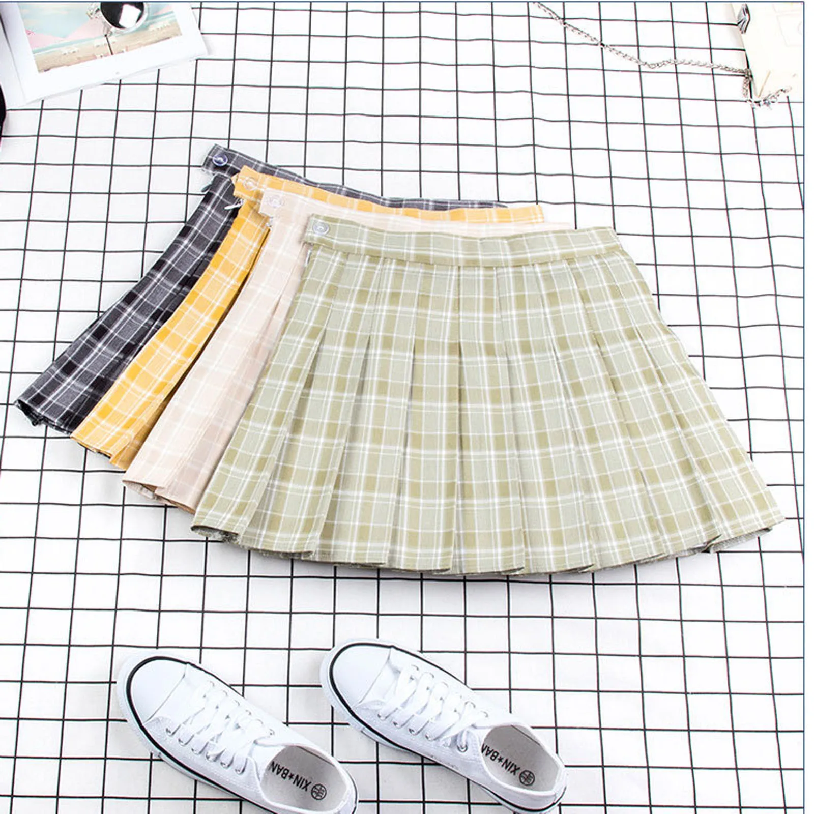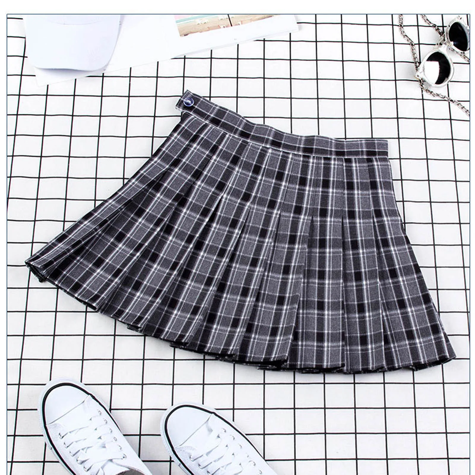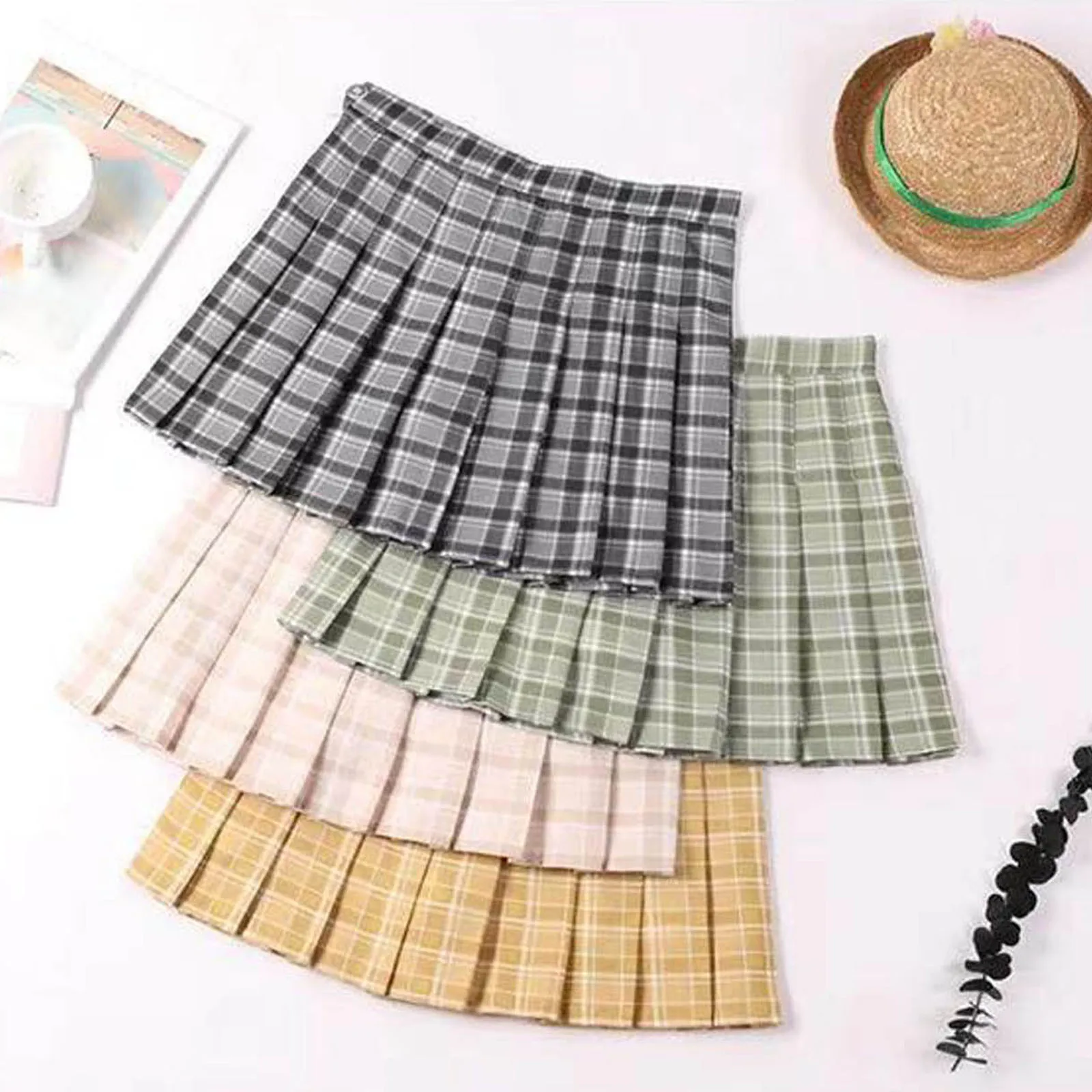 Юбка женская плиссированная с завышенной талией, модная короткая теннисная юбка-трапеция в клетку, с защитой от выгорания, с завышенной талией, для подростков