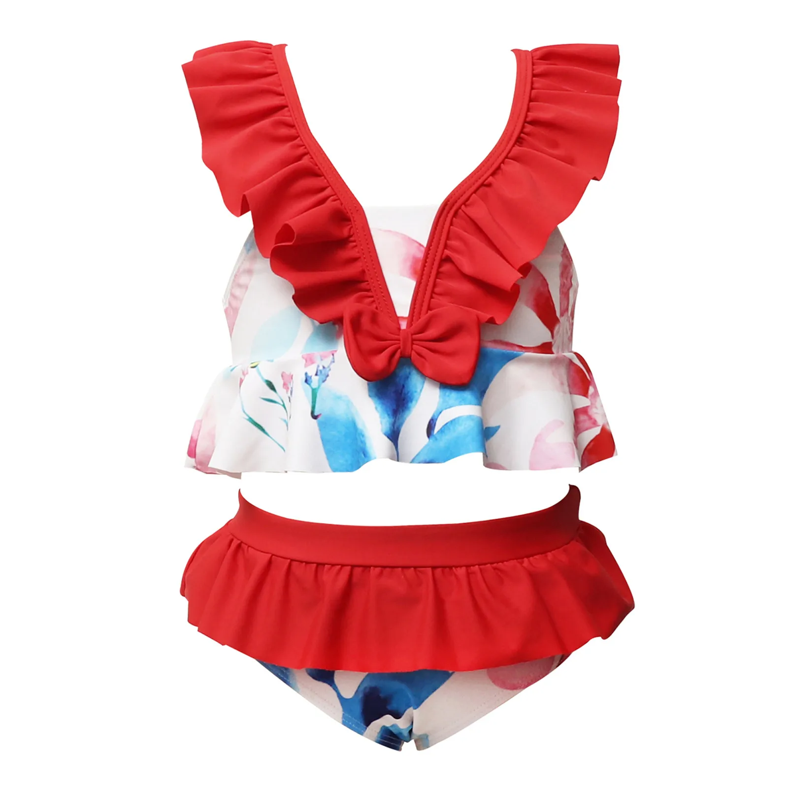 Новинка 2020, детское бикини для девочек, Цветочный комплект бикини с оборками, купальник из двух частей для девочек с высокой талией, пляжный купальный костюм для девочек, купальник # g30