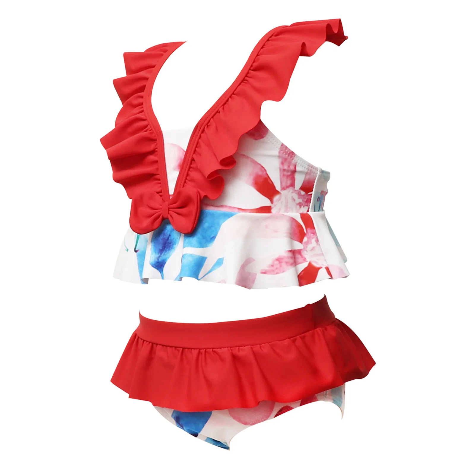 Купальник-бикини для девочек, с цветочным принтом, с оборками, От 2...