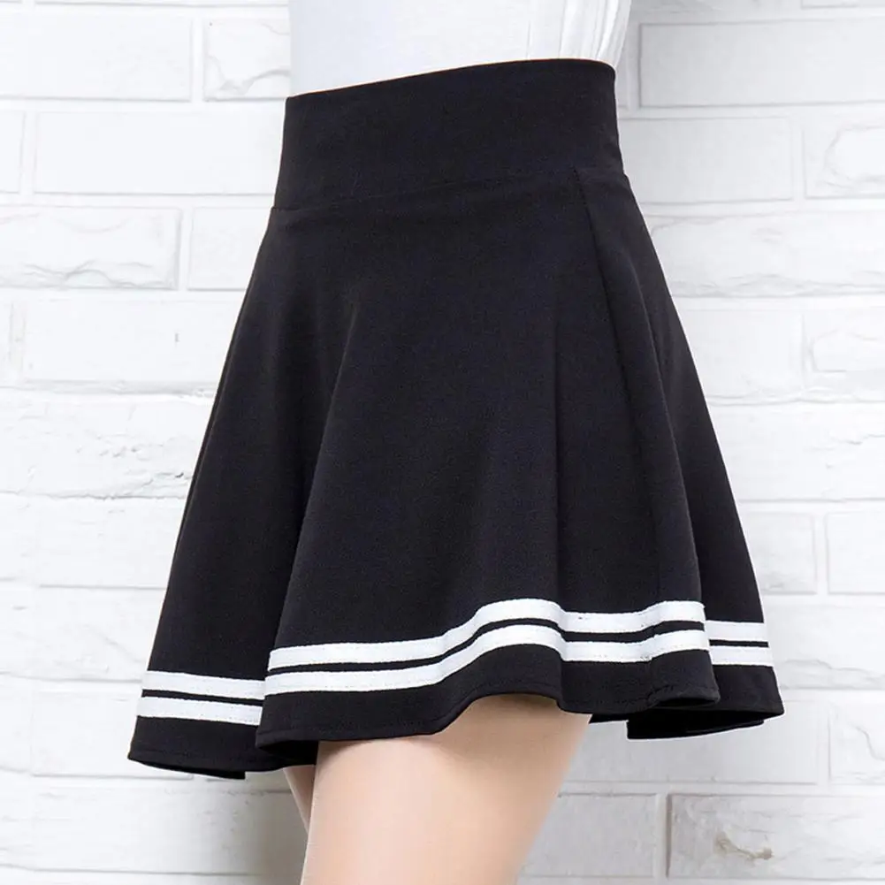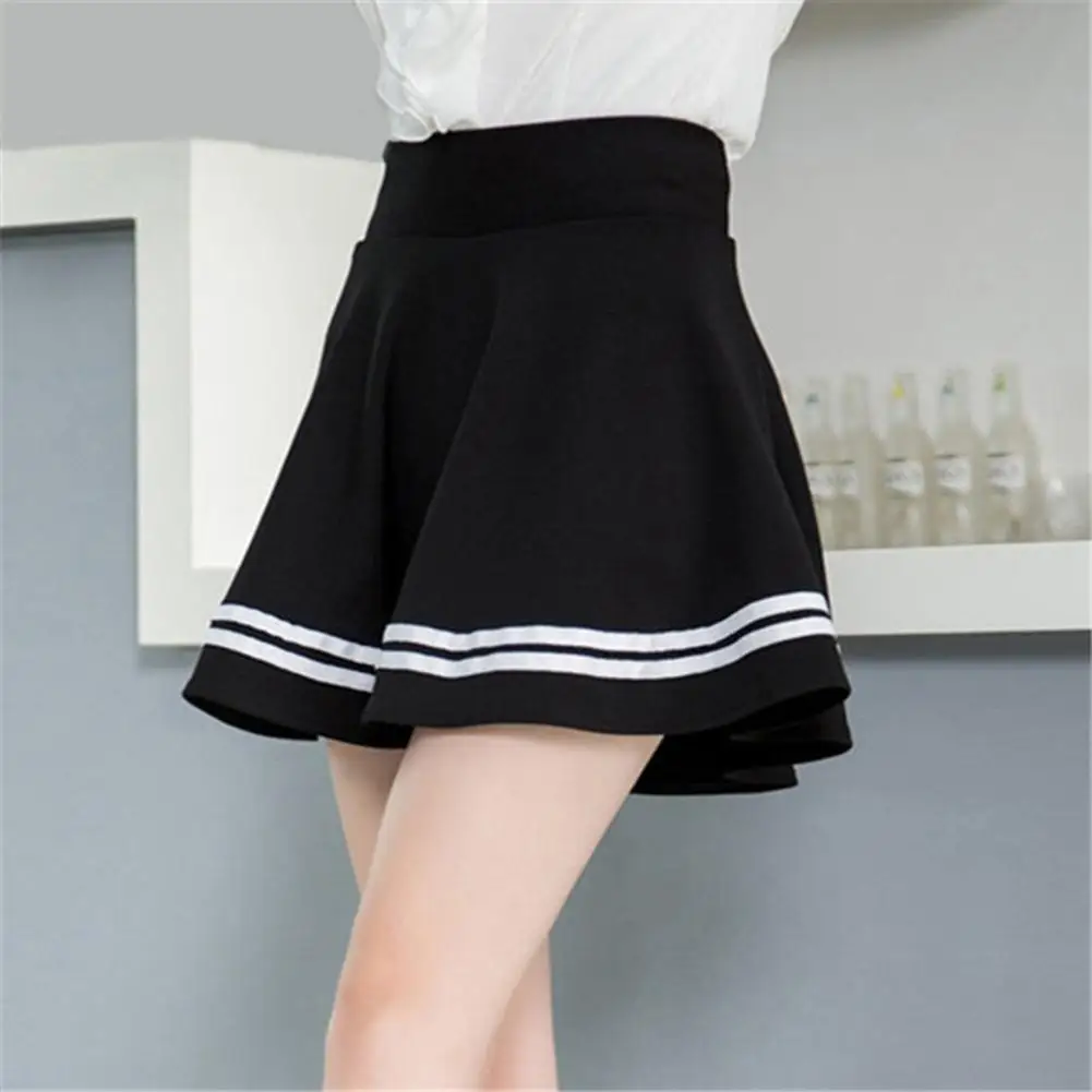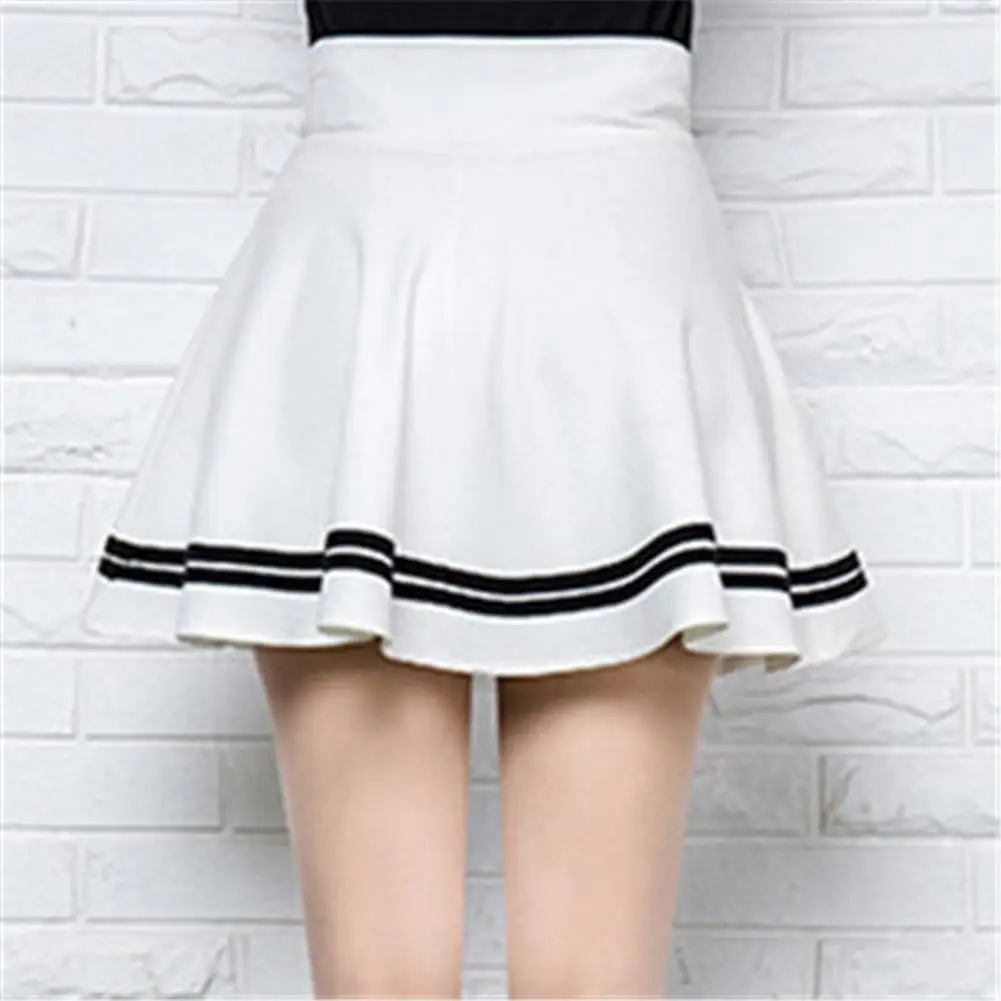 Женская Однотонная юбка, привлекательная мини-юбка в полоску с высокой талией, черная, белая трапециевидная школьная форма большого размера