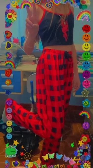 Верх огромный, ткань брюк очень синтетическая и тонкая, но очень удобная