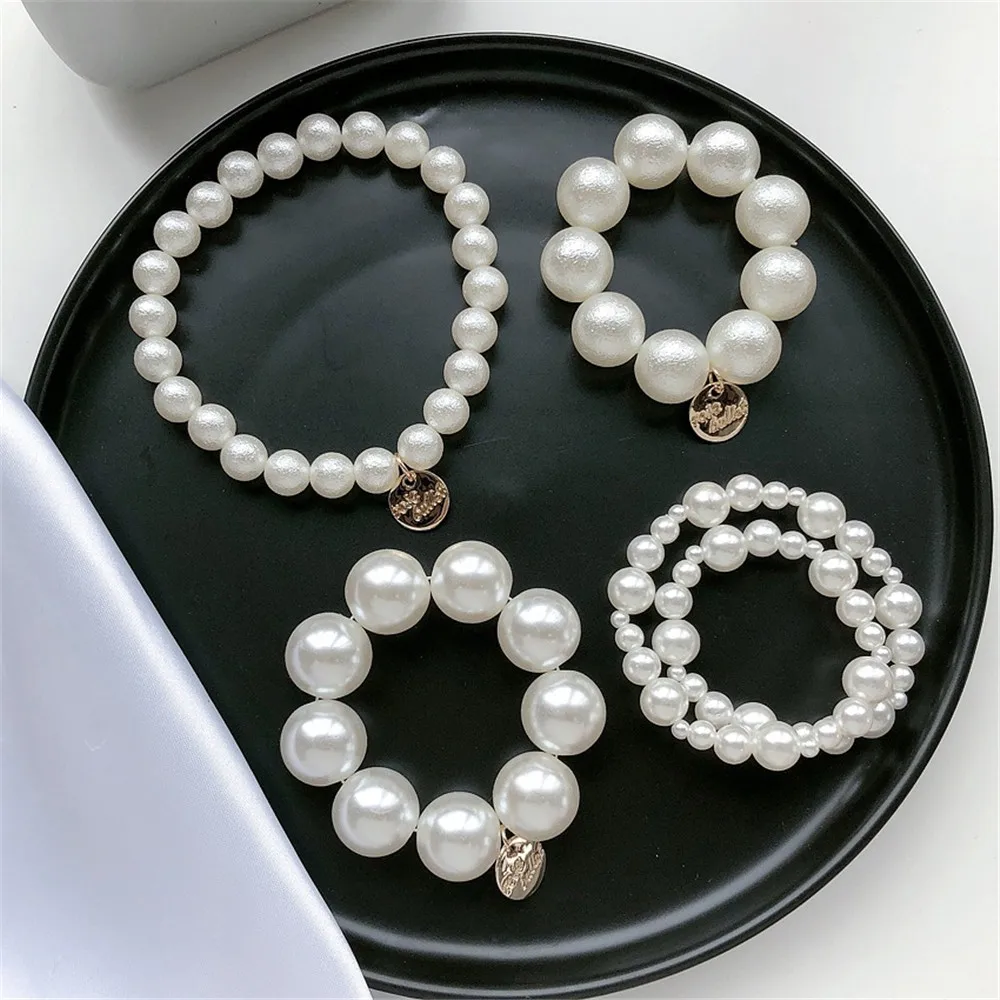 Корейский романтический жемчуг резинка для волос орнамент украшение для волос браслет для женщин нарисованной длинноволосой девочкой, резиновые ленты аксессуары для волос Веревка повязка на голову