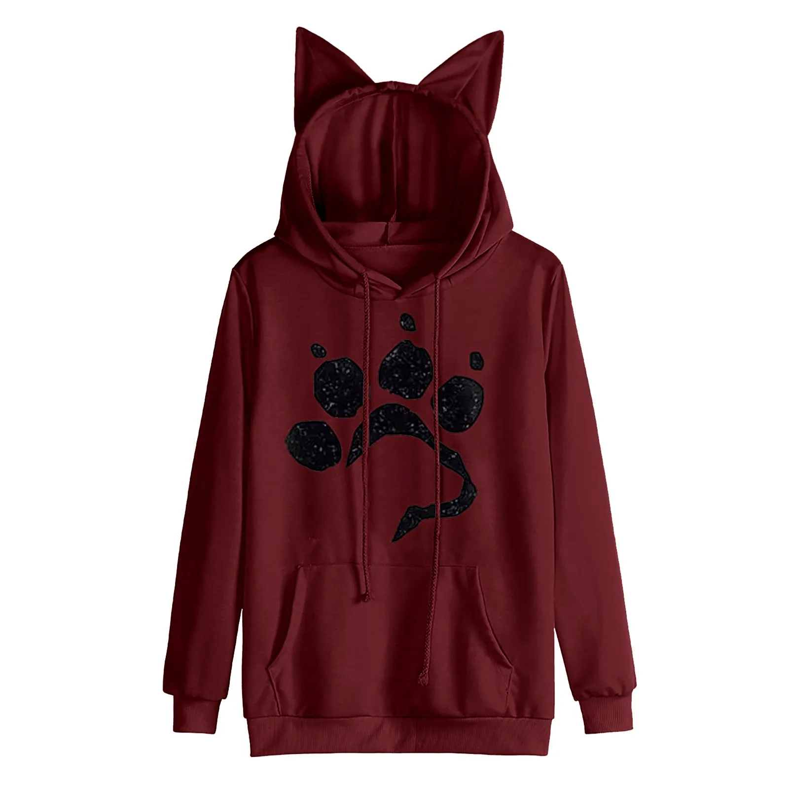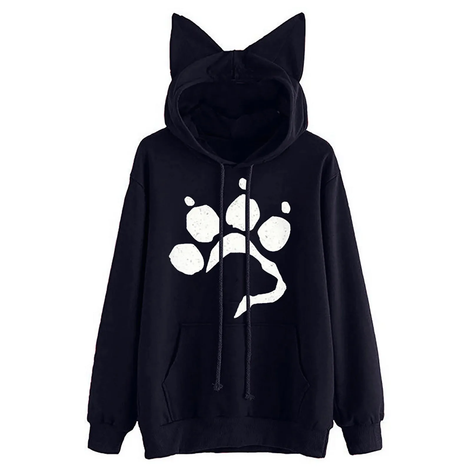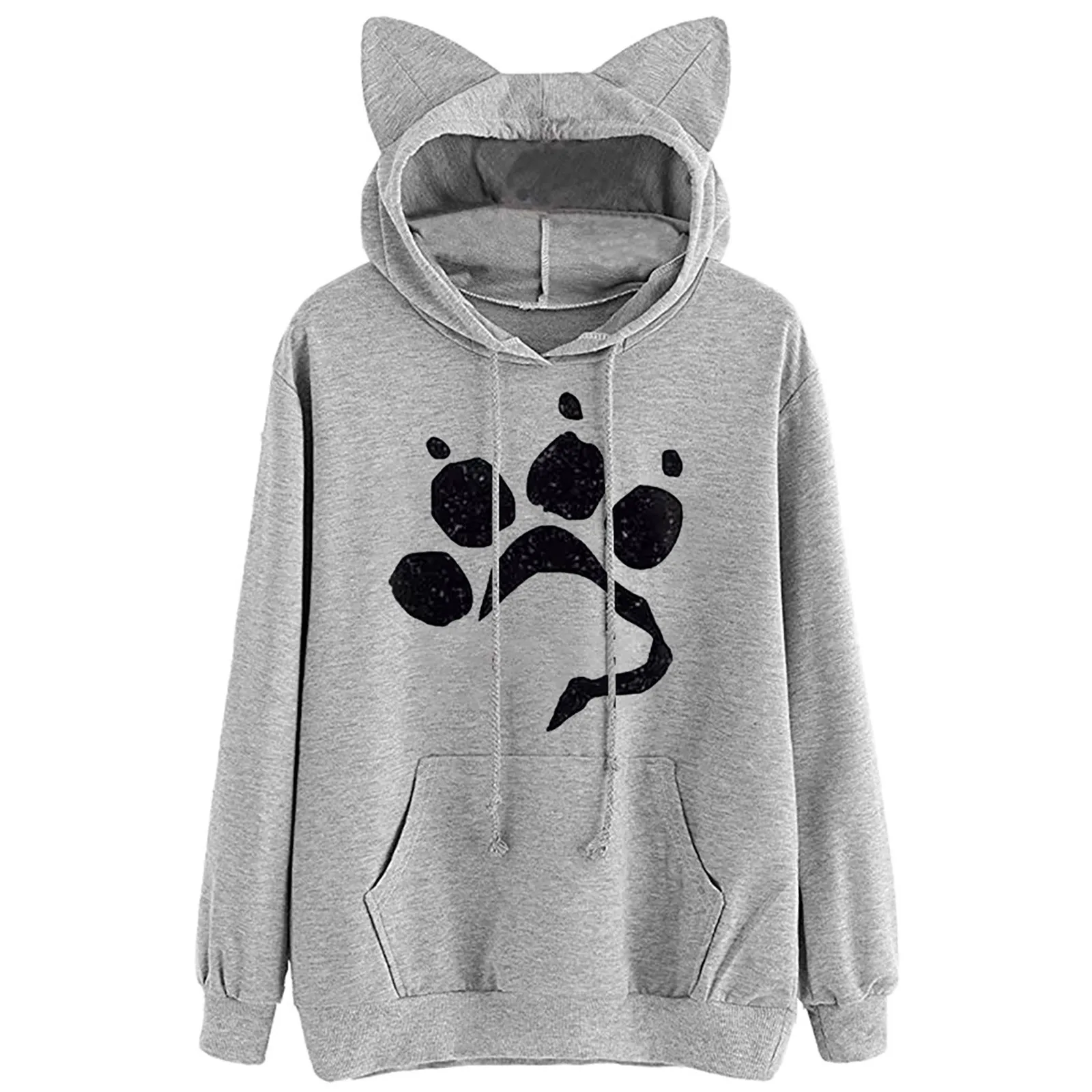 Женский Повседневный пуловер с кошачьим принтом, свитшот, прекрасный спортивный костюм в стиле Харадзюку с кошачьими ушками, свитшот, Женская толстовка с капюшоном для девочек, Толстовки, Толстовки