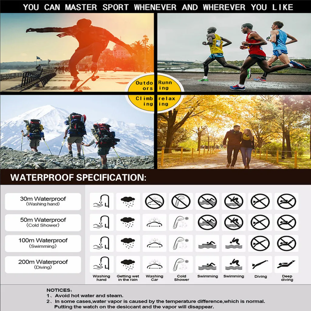 Наружные многофункциональные спортивные часы, мужские классические секундомер, электронный светодиодный наручные часы с подсветкой, 50 м водонепроницаемые цифровые часы Выбор материалов: высококачественный ремешок для часов из искусственной кожи, высококачественный чехол для часов из поликарбоната, прозрачная зеркальная поверхность из смолы, нижняя крышка из нержавеющей стали, Пряжка из нержавеющей стали Глубина водонепроницаемости 50 м: Не стесняйтесь носить часы, когда вы мочите под дождем, принимайте душ или Мойте руки. Но не нажимайте кнопки под водой. Также избегайте использования при экстремальной горячей или холодной температуре Многофункциональность: отображение времени, секундомер, задний светильник, отображение даты, отображение недели, будильник времени, 12/24 ежечасный, водонепроницаемый, ударопрочный, Модный стиль, многофункциональный дизайн, тонкое мастерство, не пропускать часы, стоит получить его и лучший выбор для подарков