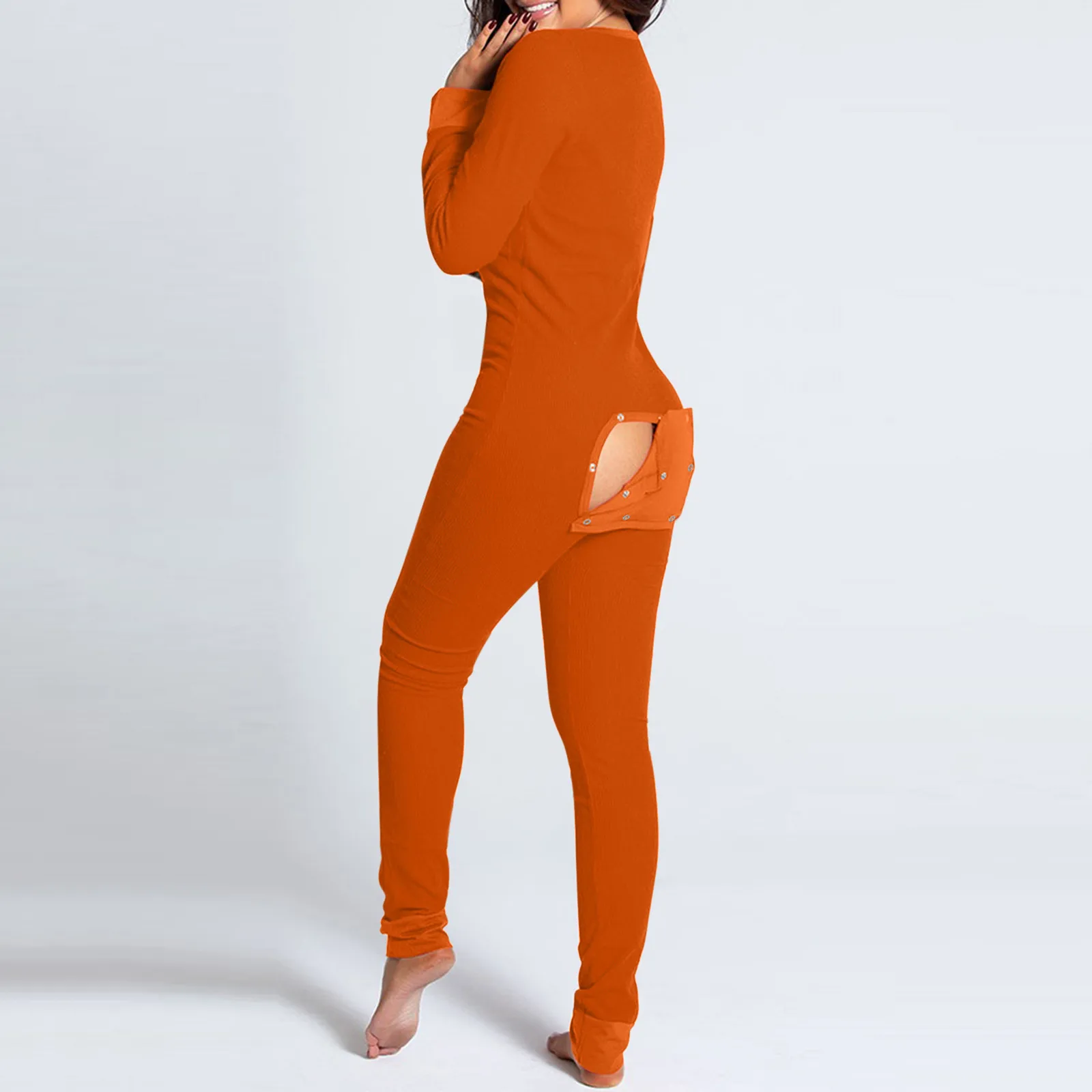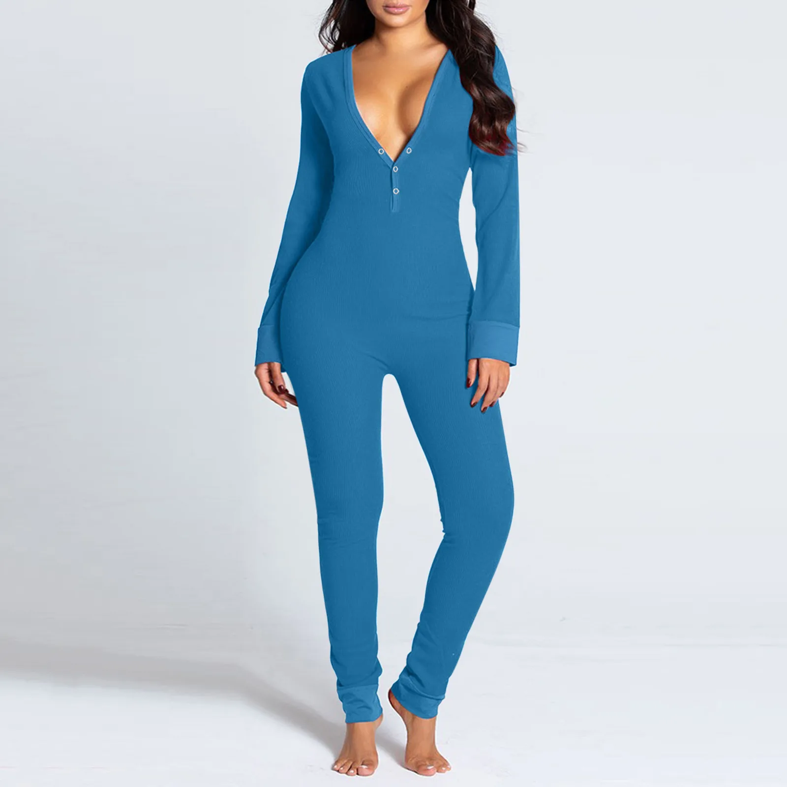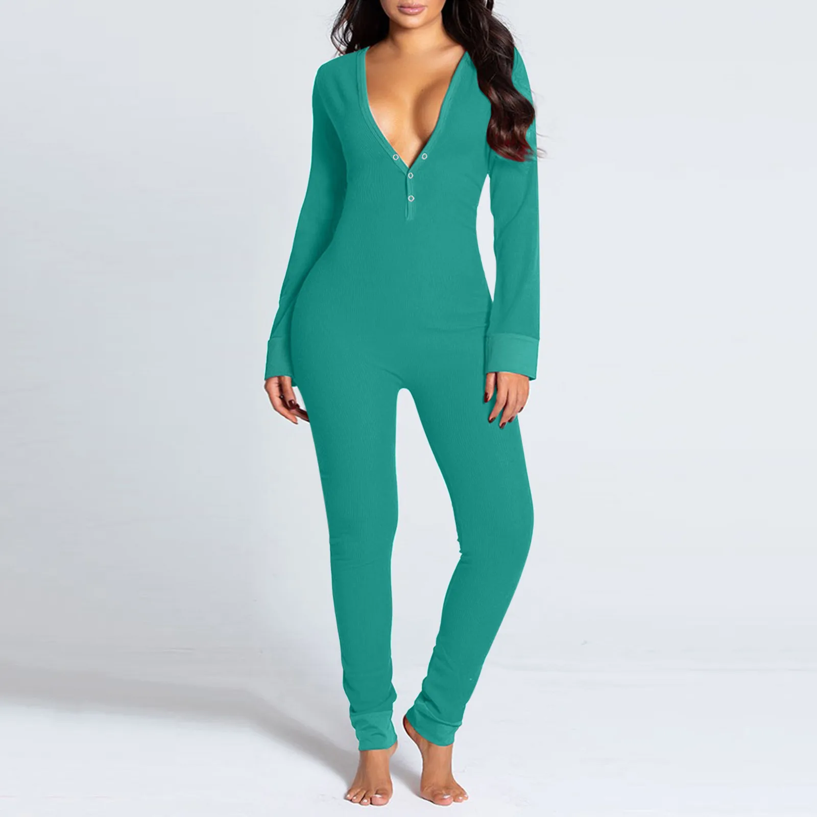 KANCOOLD комбинезон женский, однотонный, на пуговицах, с вырезом, на пуговицах, с клапаном, эластичный, облегающий, для взрослых
