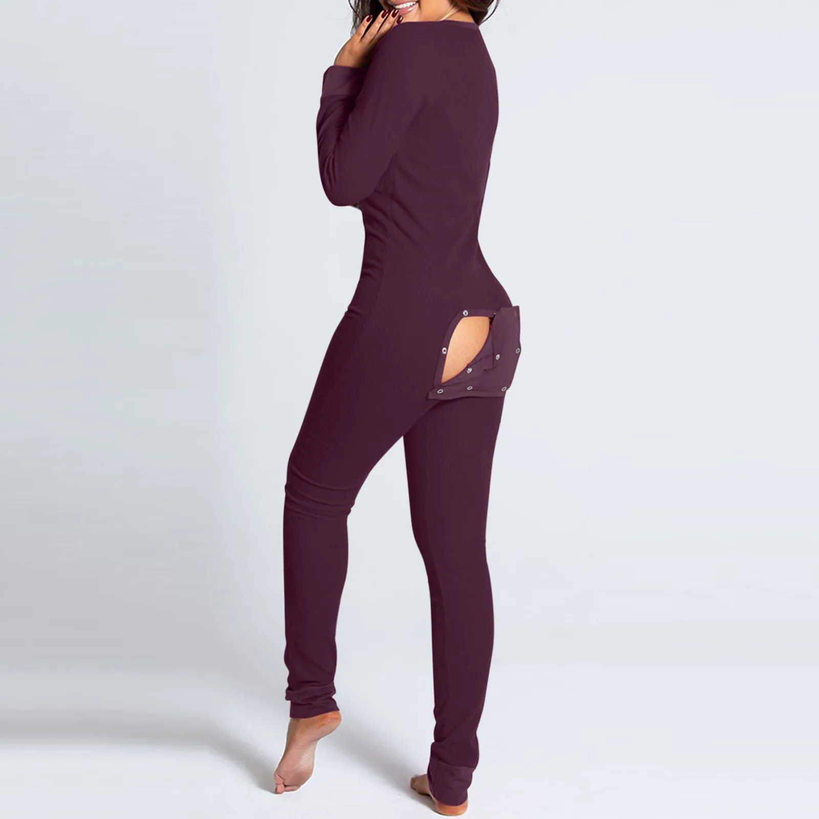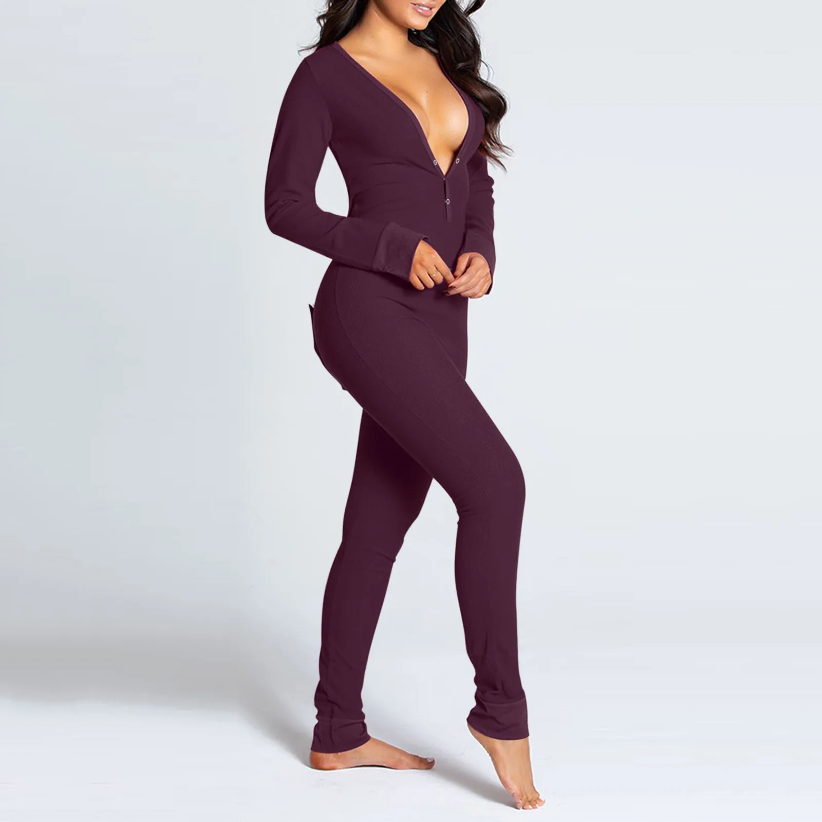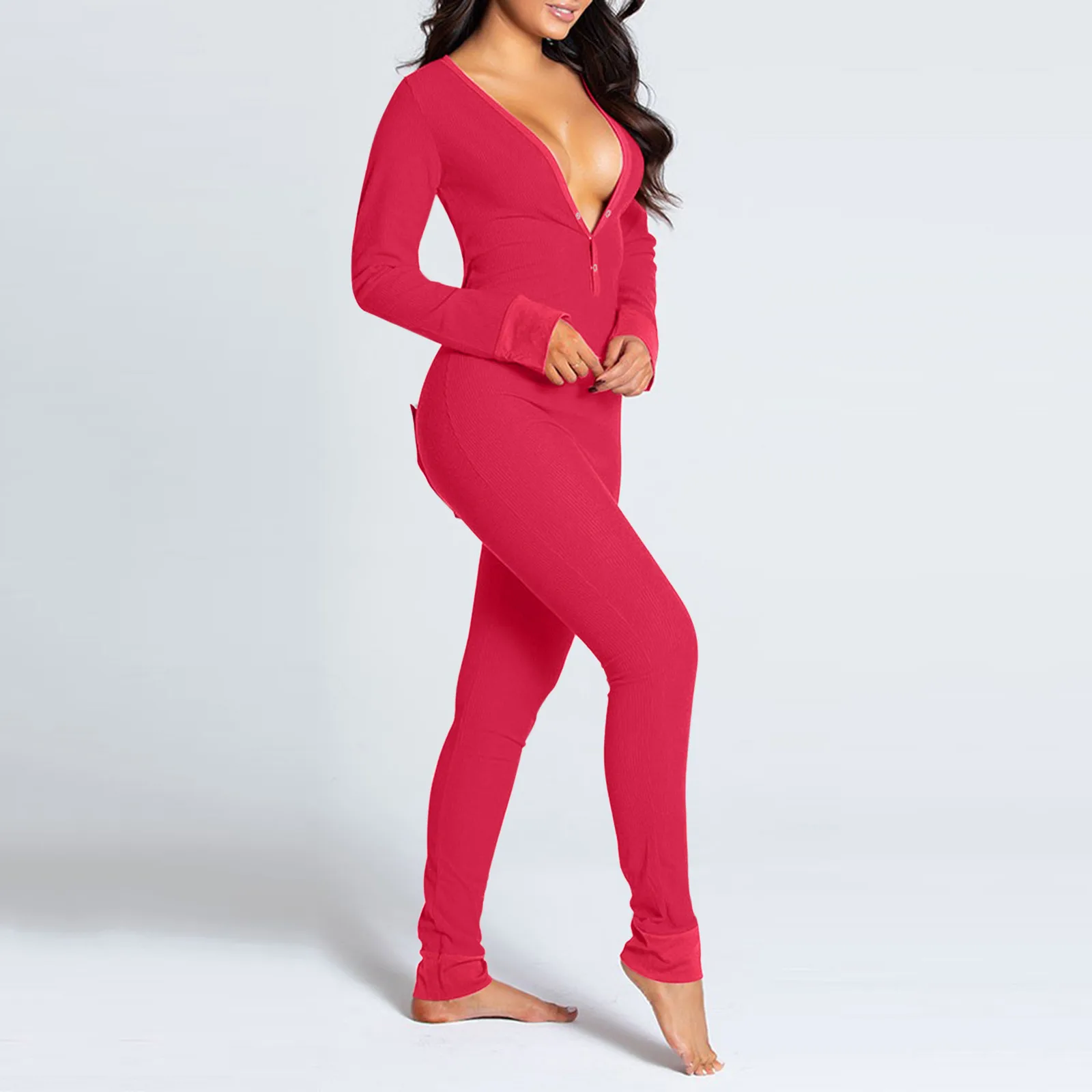 KANCOOLD комбинезон женский, однотонный, на пуговицах, с вырезом, на пуговицах, с клапаном, эластичный, облегающий, для взрослых