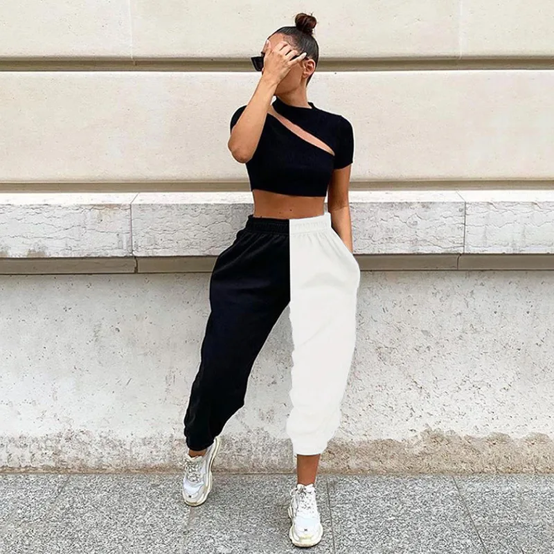 Брюки женские с высокой талией, модные повседневные штаны контрастн...