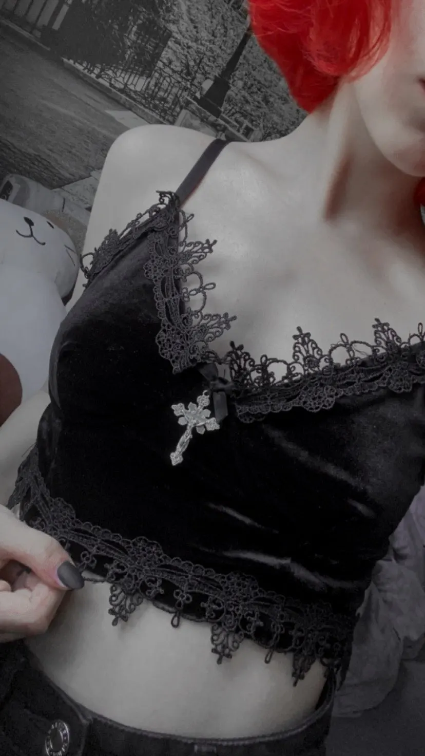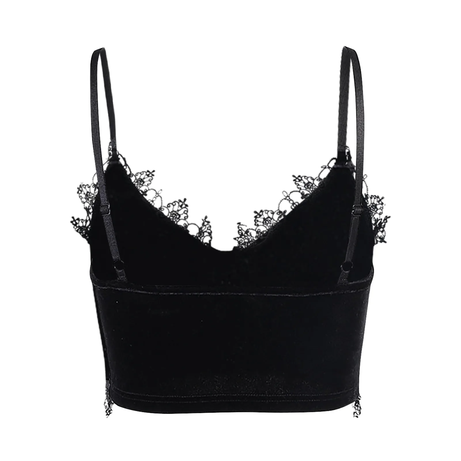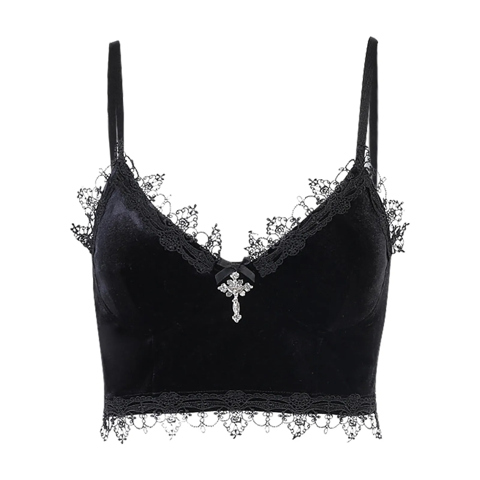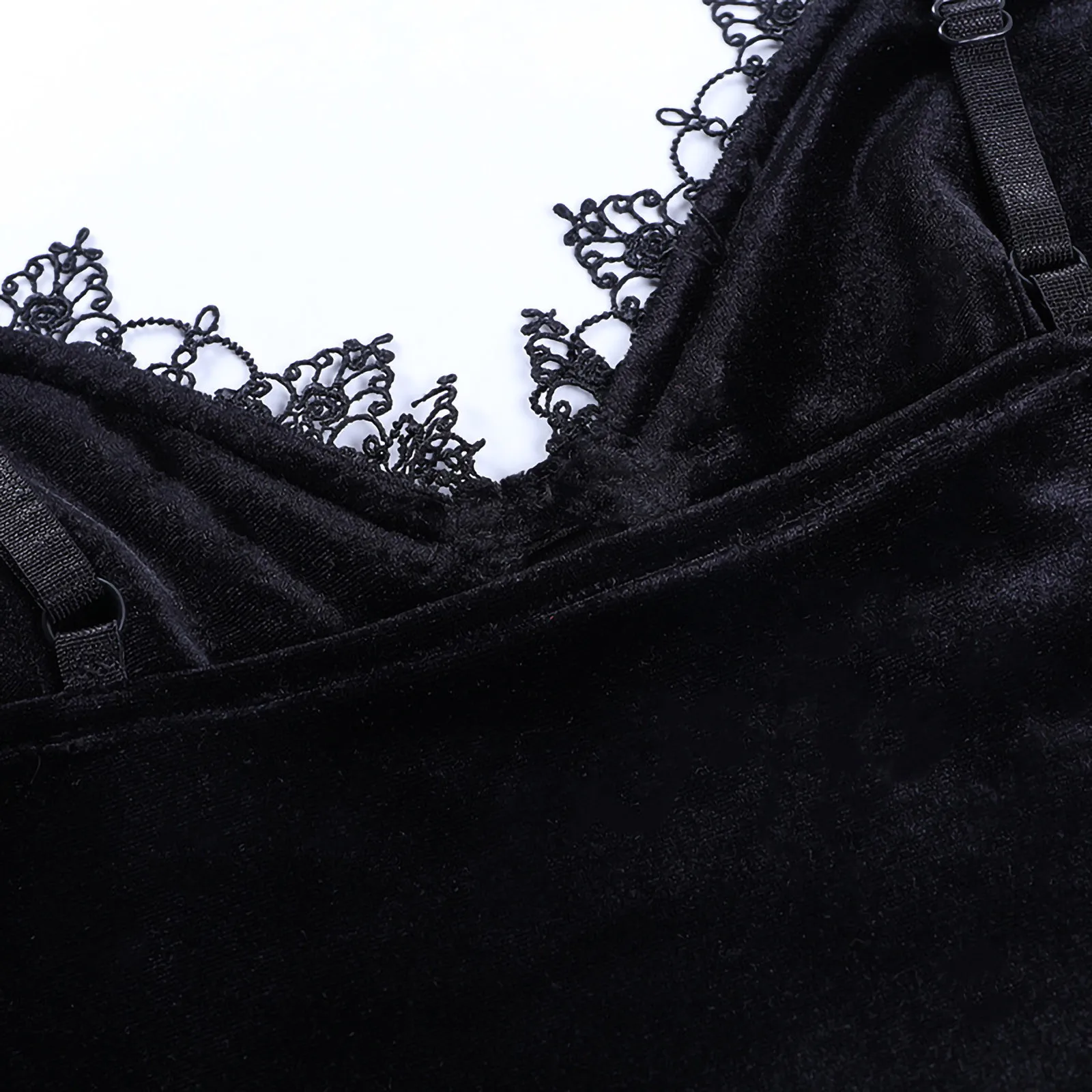 Женский бархатный топ в готическом стиле, Кружевной укороченный топ в стиле Харадзюку, без бретелек, в стиле ретро, для ночного клуба