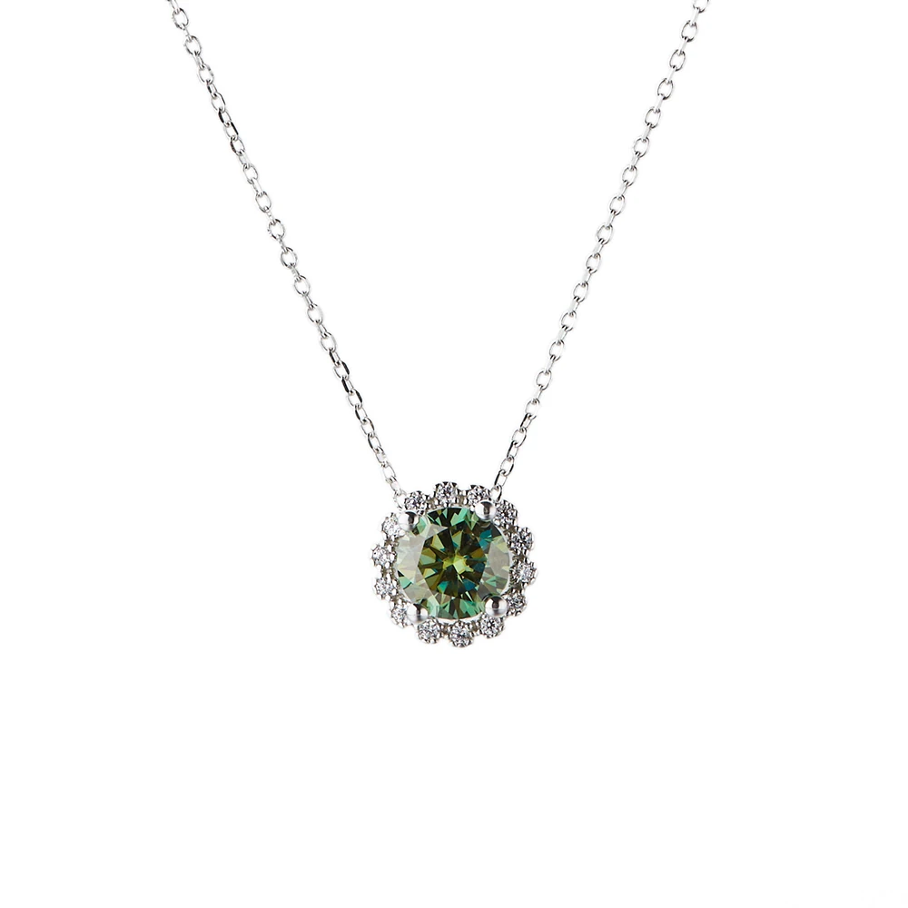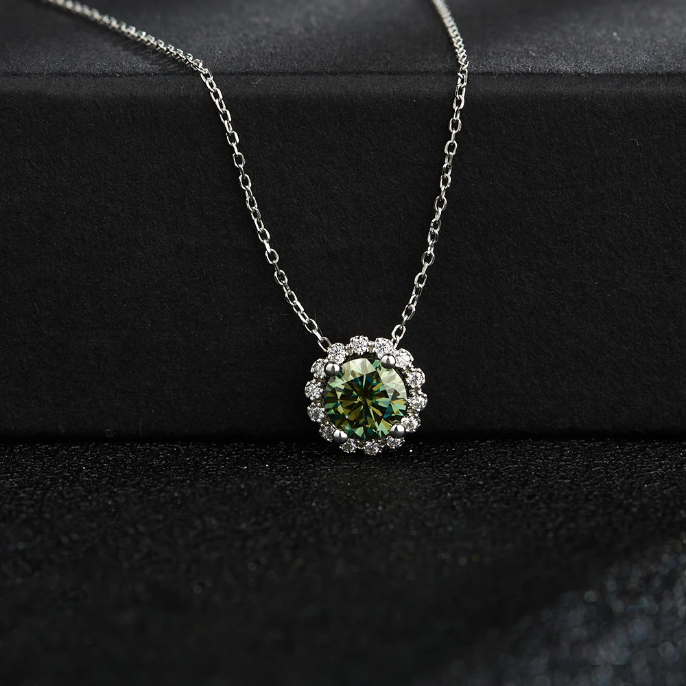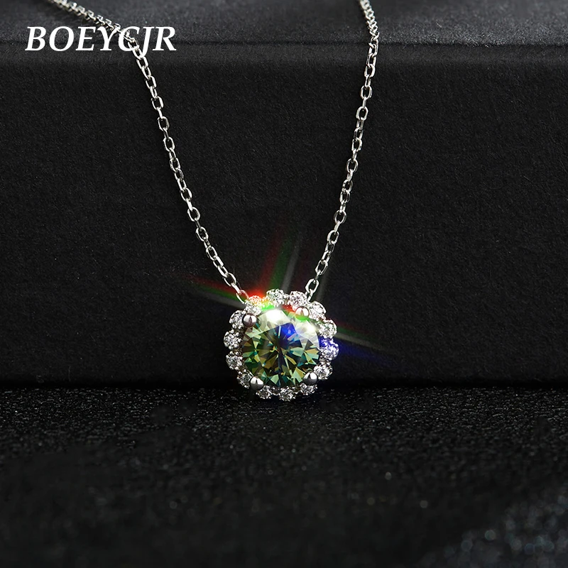 BOEYCJR 925 Серебряный цветок 1 карат3 карата зеленый Муассанит VVS1 элегантный свадебный кулон ожерелье для женщин Подарок на годовщину