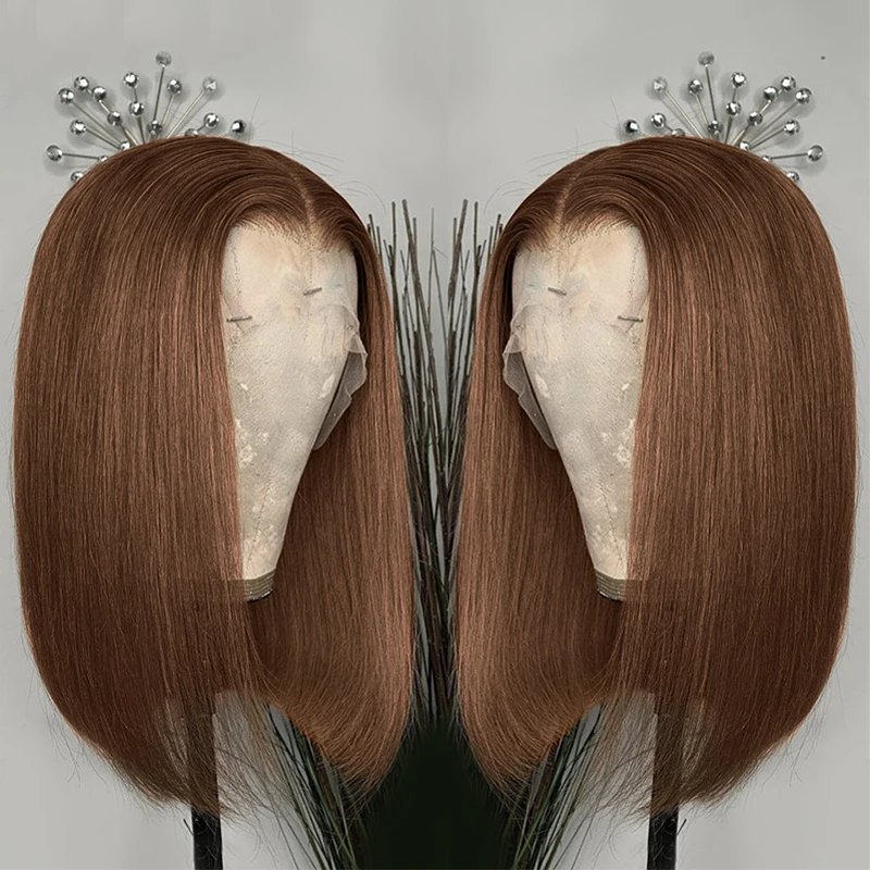 Парик из человеческих волос коричневого цвета на сетке спереди, парик из T-частей на сетке, прямой короткий парик с коротким Бобом, парик на сетке 4x4, 180% бразильский парик на сетке спереди без повреждений