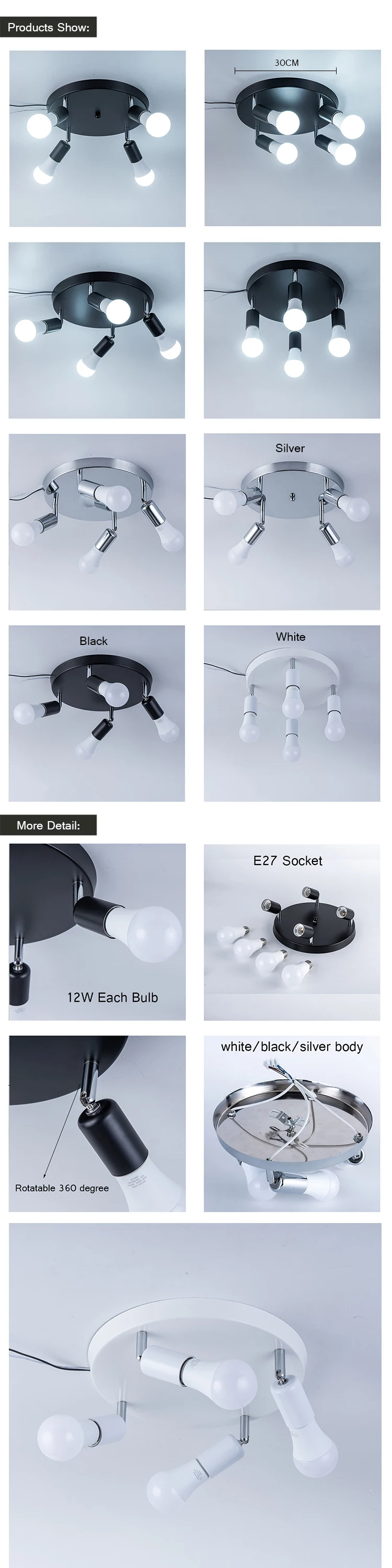 4x12 Вт Регулируемая лампа Светодиодная Подвесная лампа для спальни Новое поступление E27 розетка Подвесная лампа серебристый черный белый в наличии Спецификация: