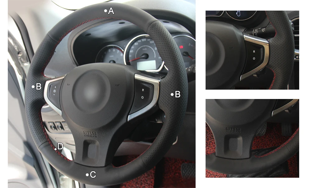 Сшитый вручную черный замшевый красный маркер фотоэлемент для Toyot...