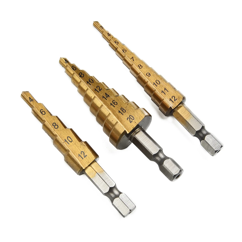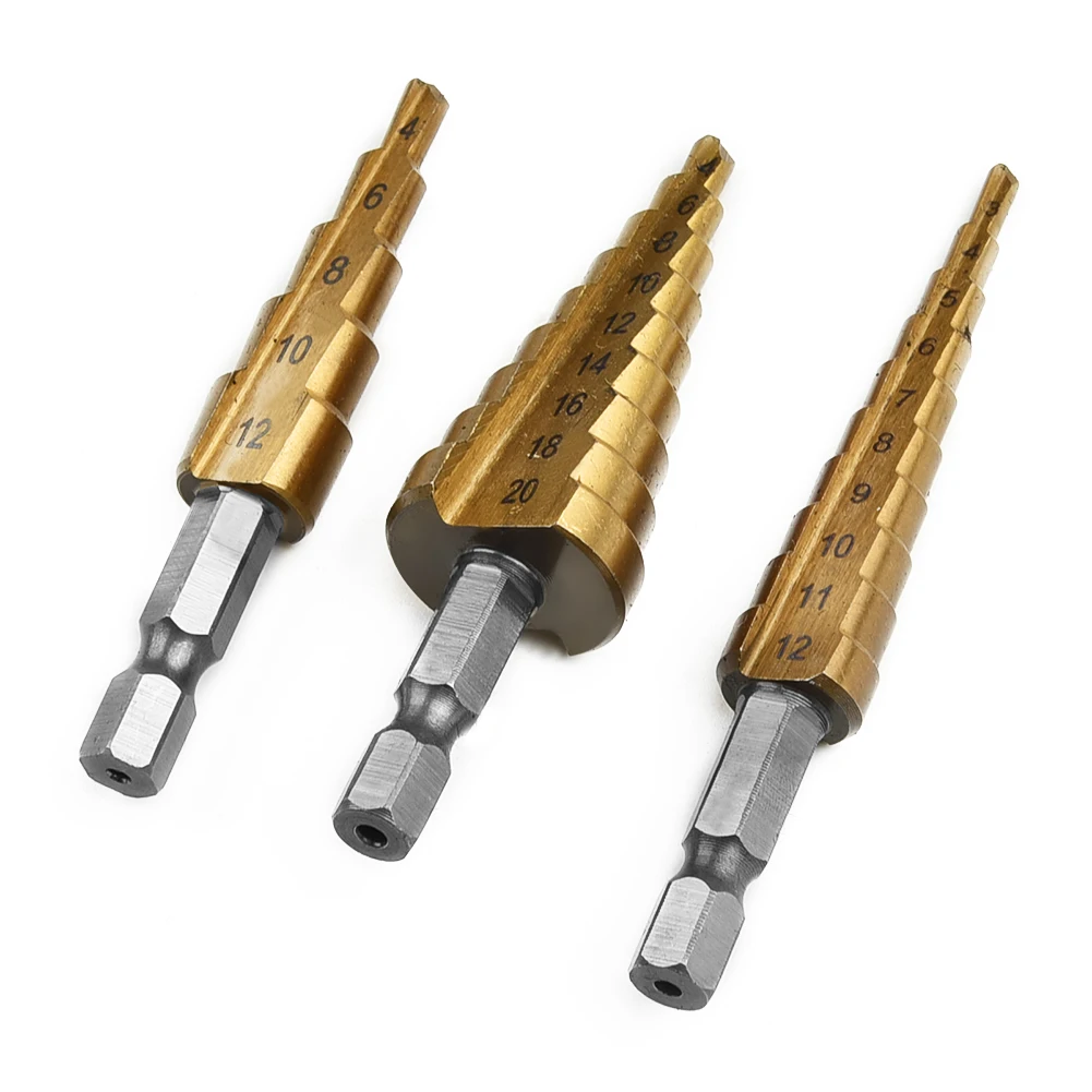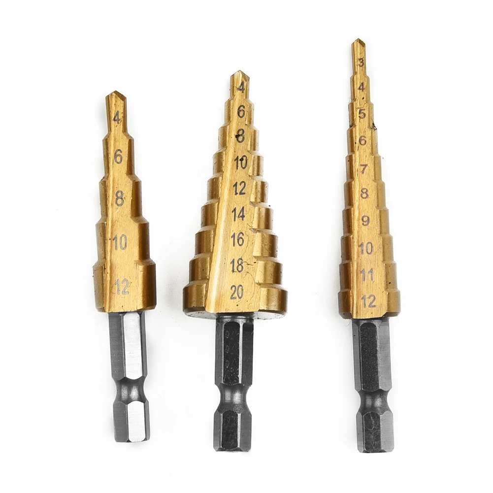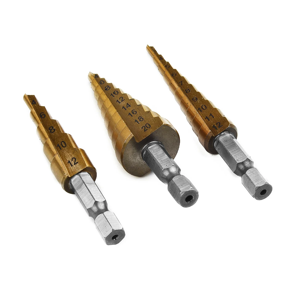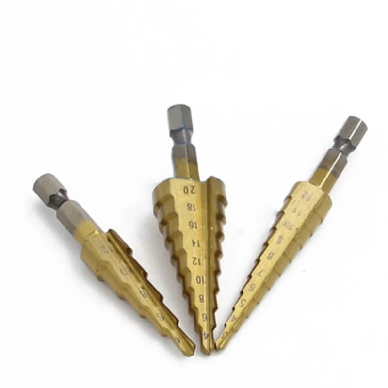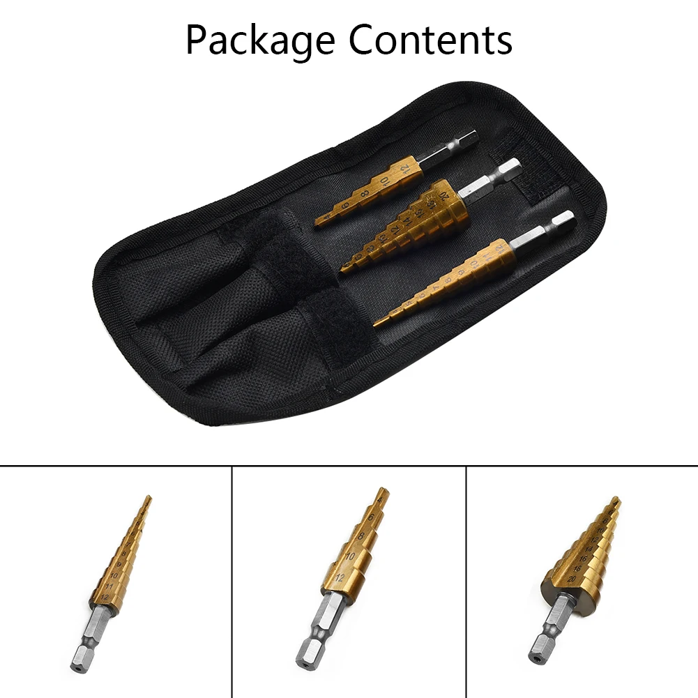 Набор ступенчатых Сверл из быстрорежущей стали, комплект из 3 насадок с титановым шестигранным хвостовиком, многофункциональный конусный резак для отверстий, конический, 4-20 мм3-12 мм4-12 мм с чехлом