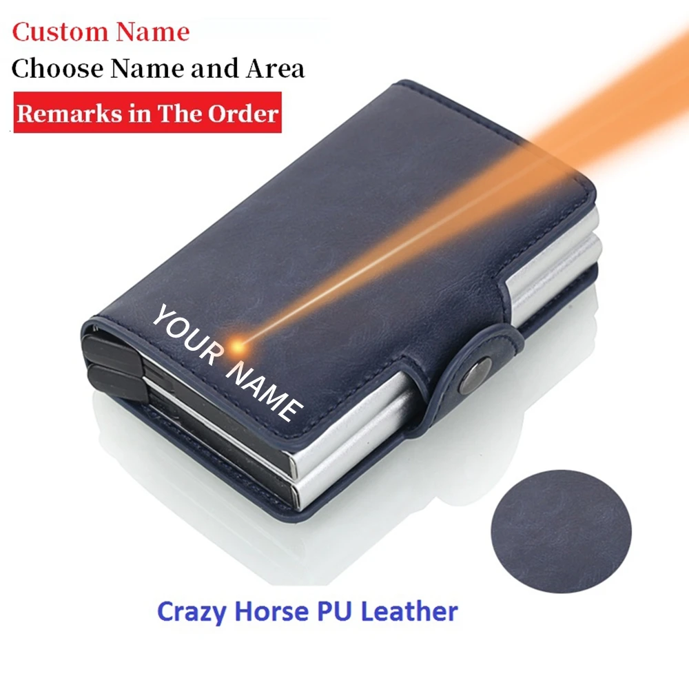 Кошелек мужской с Rfid-защитой и именем под заказ, маленький бумажник из алюминия, кожаный тонкий клатч, кредитница, 2022