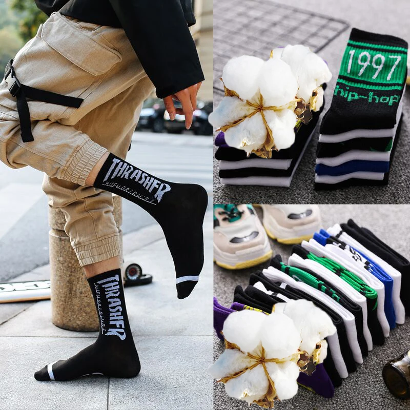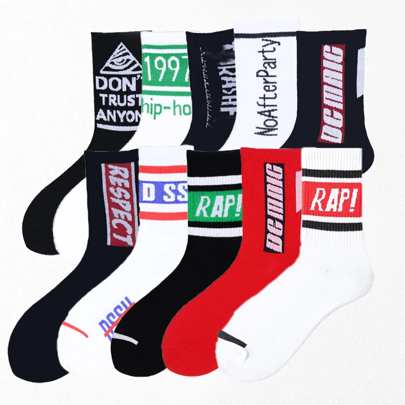 Спортивные хлопковые носки для мужчин и женщин, носки-трубы с надпи...