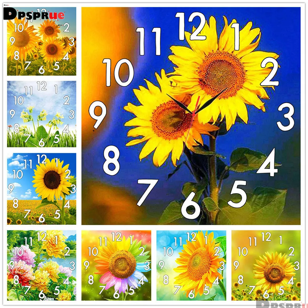 Полноформатная алмазная живопись Dpsprue, вышивка крестиком с часовым механизмом, мозаика 5D сделай сам, квадратная, круглая, с подсолнухом, 3d вышивка, подарок HG23