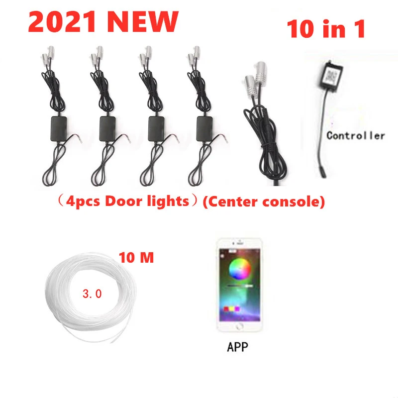 10 в 1 RGB светодиодный атмосферу автомобильный светильник интерьера волоконные полосы светильник с помощью приложения Управление декоративные естественного освещения приборной панели лампа