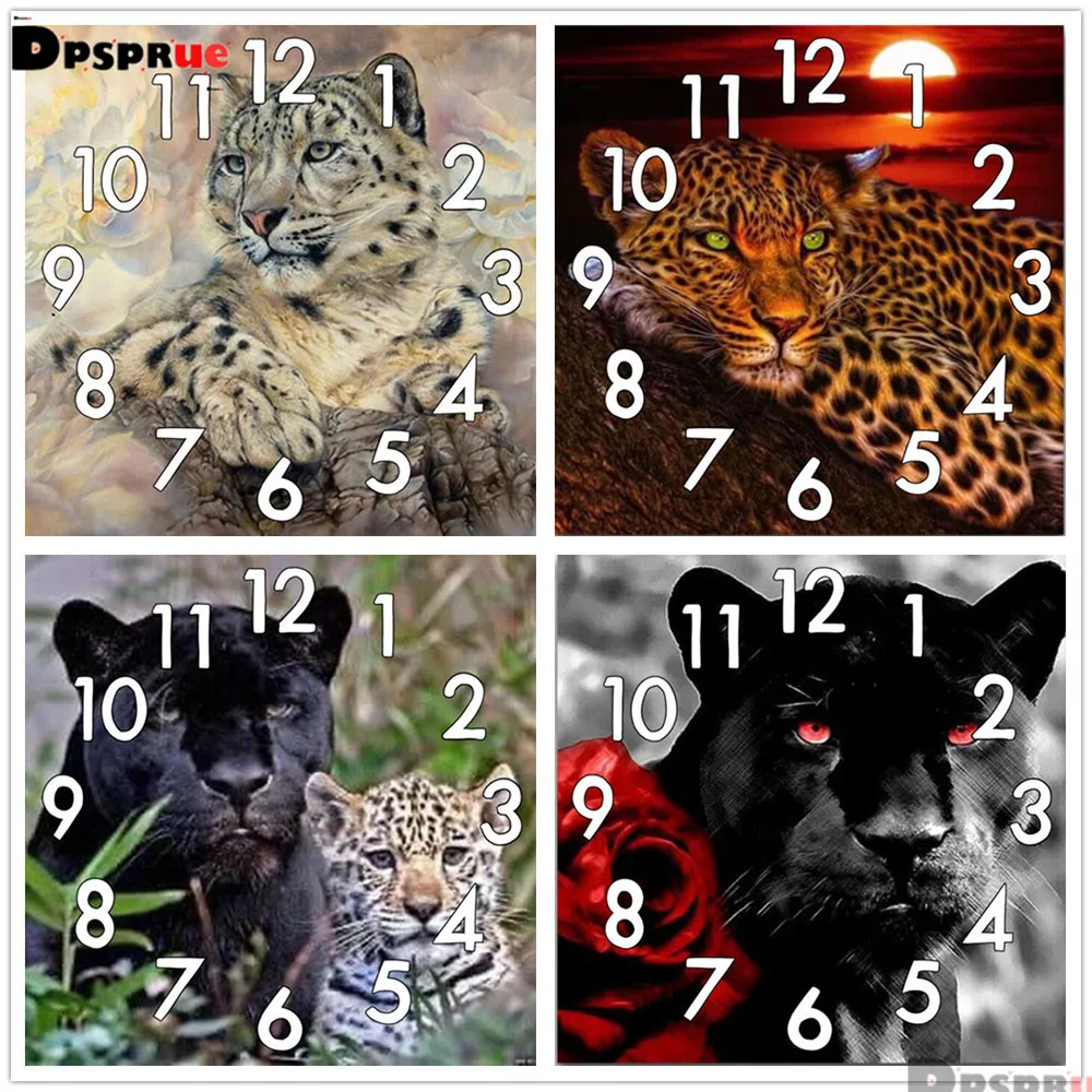 Набор для алмазной вышивки с часами Dpsprue, мозаика 5D сделай сам, квадратная круглая животная, леопард, 3d вышивка, подарок