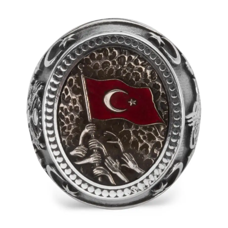 Турецкий мужской Овальный Турецкий флаг Мотив Кольцо оттоманка стил...