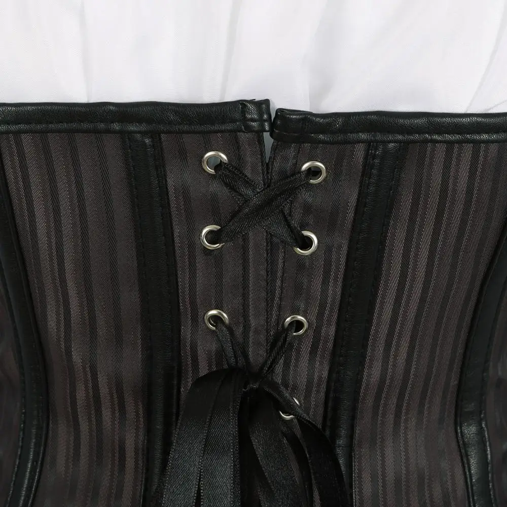 Корсет Бюстье 2 шт наряды для женщин стимпанк Холтер полосатая Нижняя бюст и белая блузка набор карнавальные танцевальные костюмы для вечеринки Корсет: 1. Женский корсет в стиле стимпанк под грудью 2. Стиль пряжки делает Клубное белье потрясающим 3. На шнуровке сзади вы можете отрегулировать корсет, чтобы он подходил вам лучше.