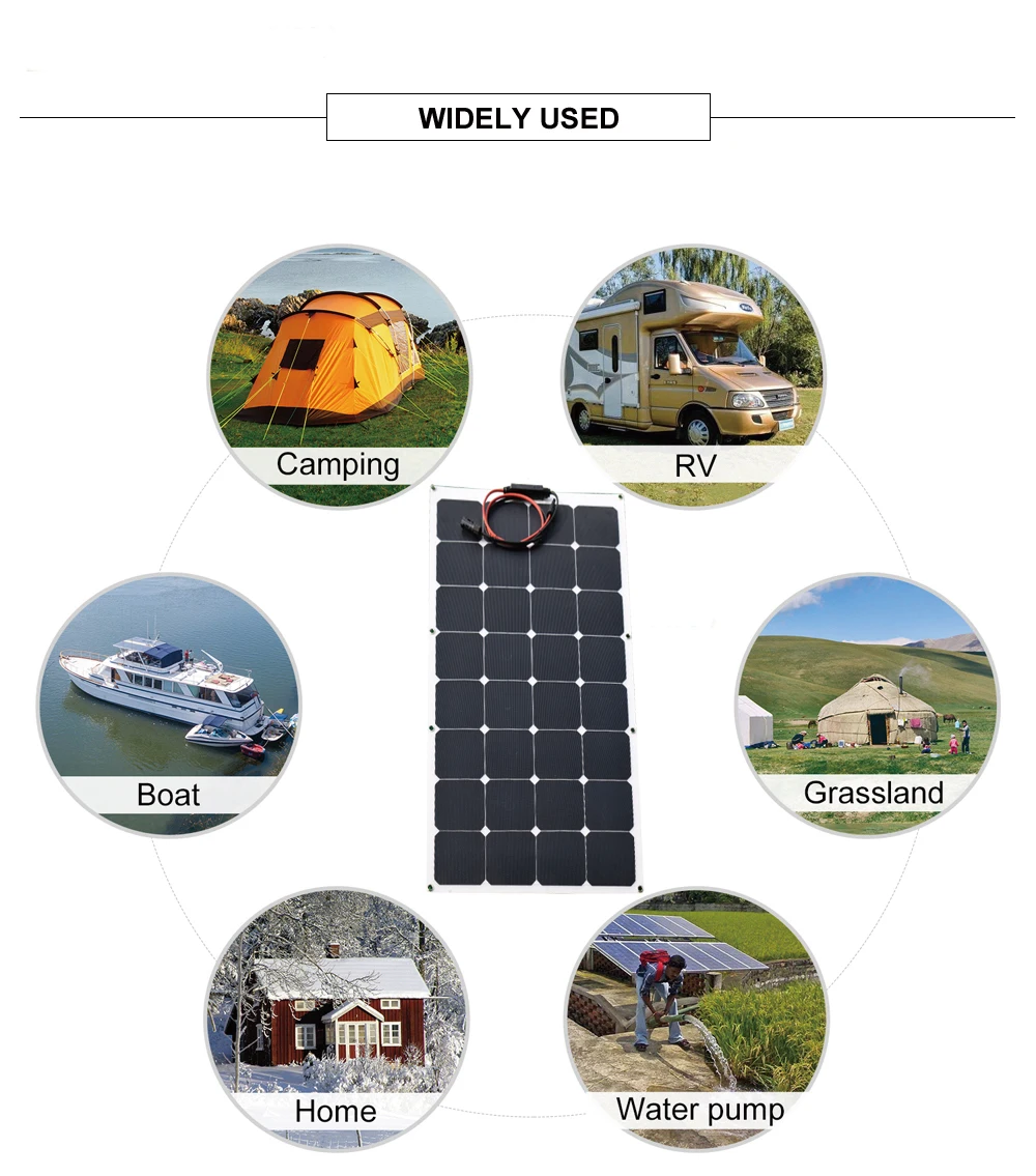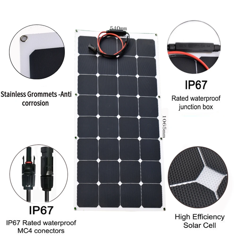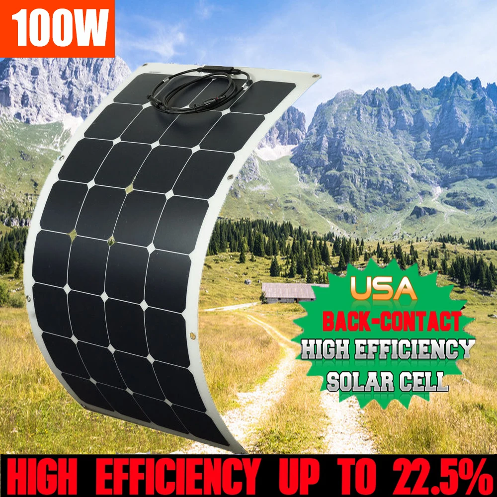 100 Вт 18 в 12 В гибкие солнечные панели с разъемами для 12 В аккумуляторных батарей для дома/кемпинга/автомобиля/лодки.