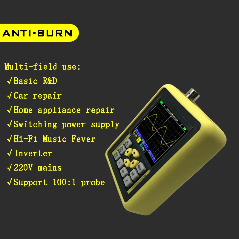 Практичный точный осциллограф и по невероятной цене. Простота использования и с преимуществом подключения его к внешнему монитору, чтобы увидеть большие формы волны, не теряя деталей. Большое спасибо продавцу.