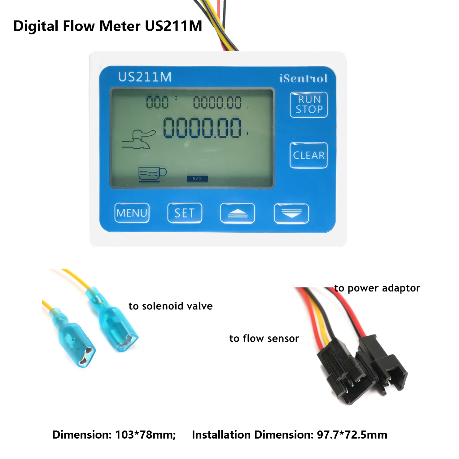 1. Контроллер цифрового дисплея US211M может отображать мгновенный поток, блок потока L / min (или GPM),