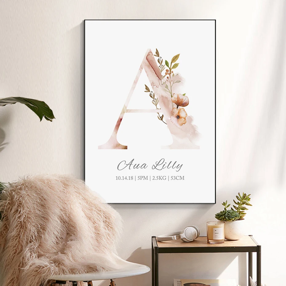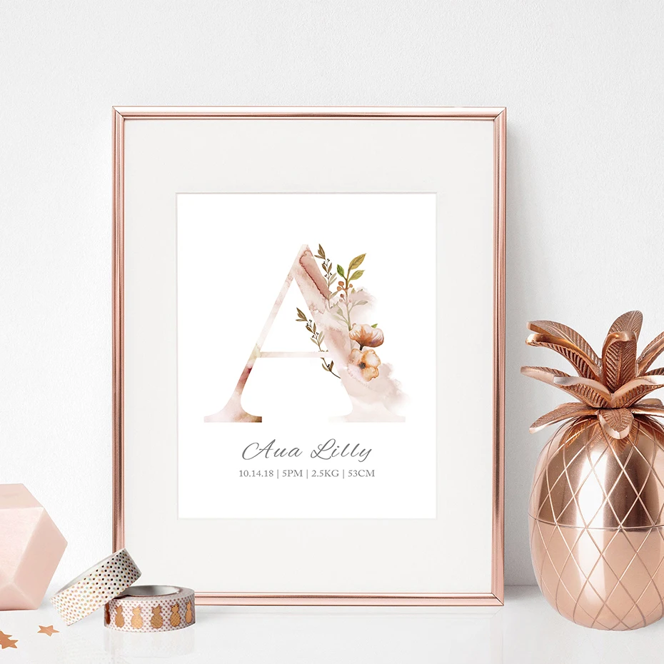 Новорожденные девочки нурсей Новорожденные розовые персонализированные инициальное имя Картина на холсте постер домашний Декор печать Настенная картина
