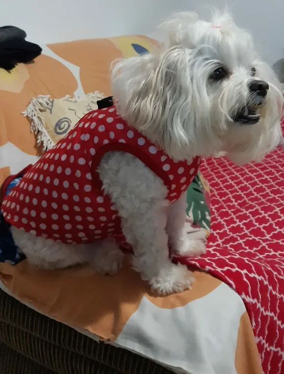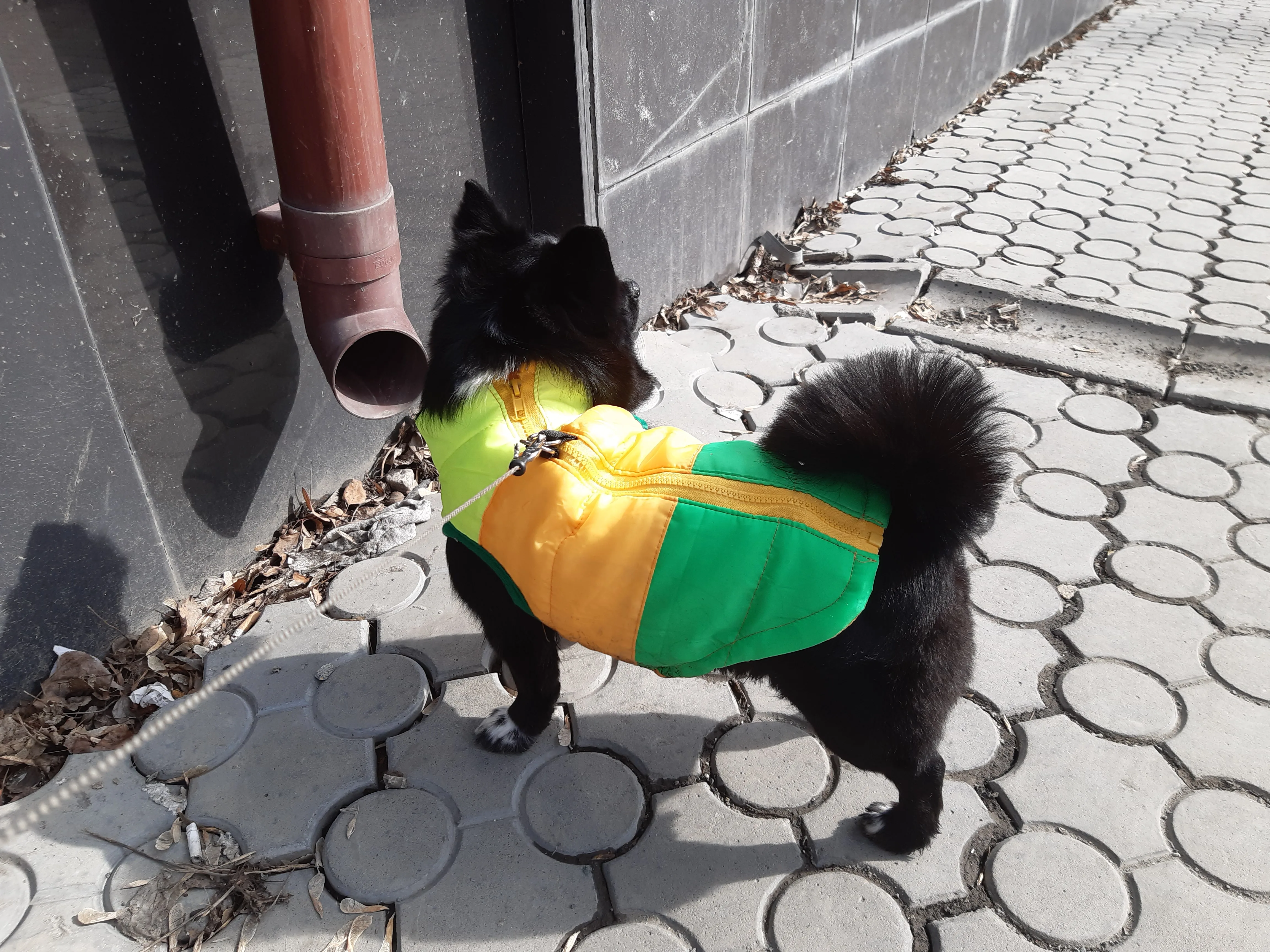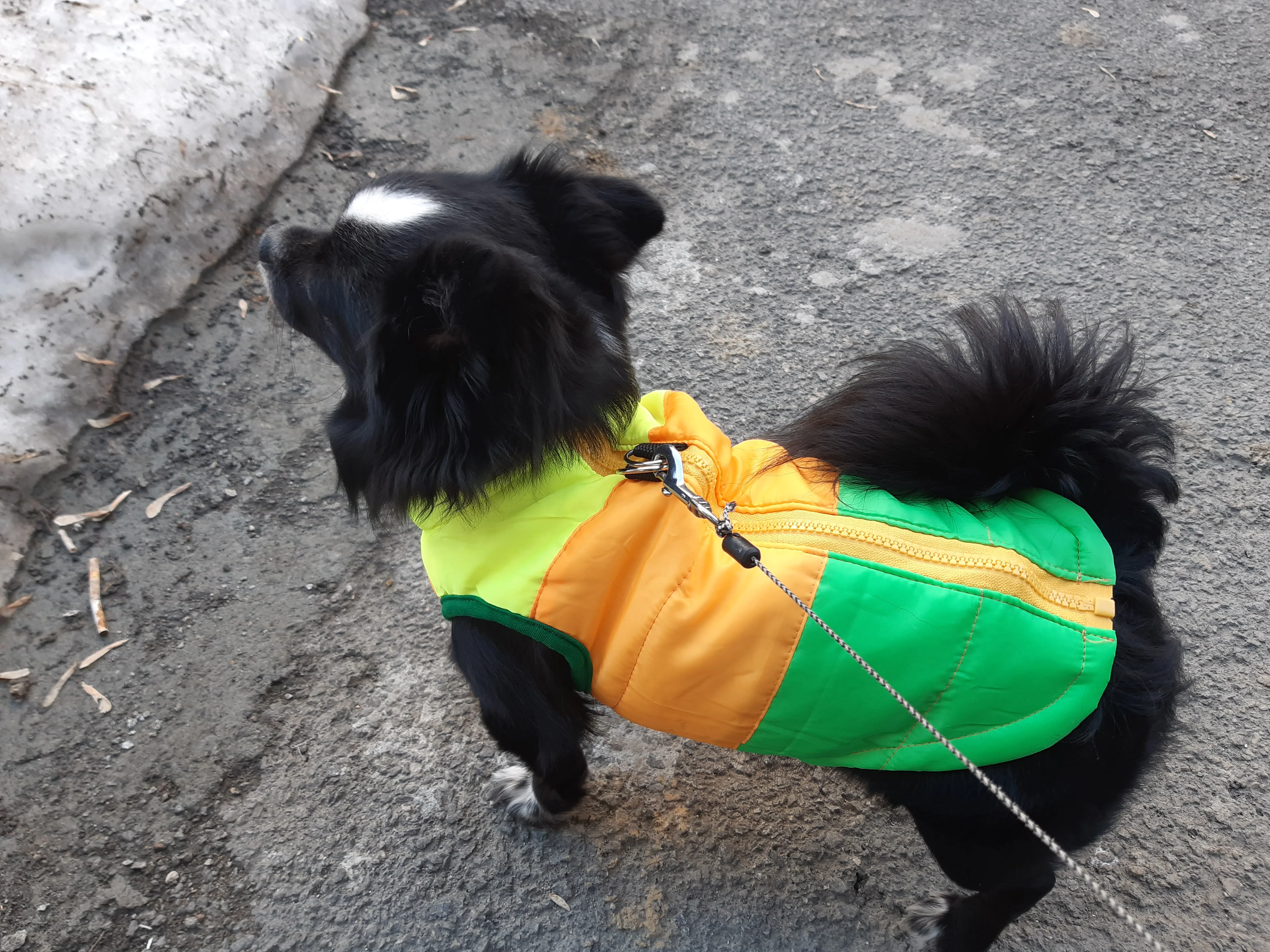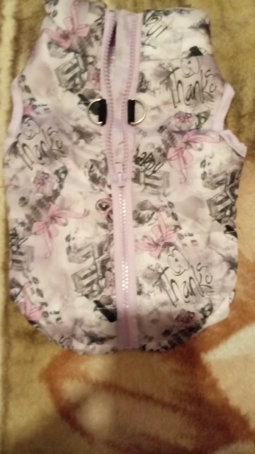 Материал и качество желетки хорошие)) НО !!! Брала на Чихуахуа длиной спинки 33 см, объём груди 38 см размер М. Из-за огромных вырезов для лап велико в груди и всё свободно, надо промежуточный размер между S и М. Нужно как- то ушивать или пришивать рукавчики. Модель неудачная, вырезы по ширине, а нужно делать по высоте (длине) овалы в выкройке. Замок застёгивается снизу-вверх - это неудобно и низ топорщится, не облегает. Товар на слабую троечку, только красивый материал)))