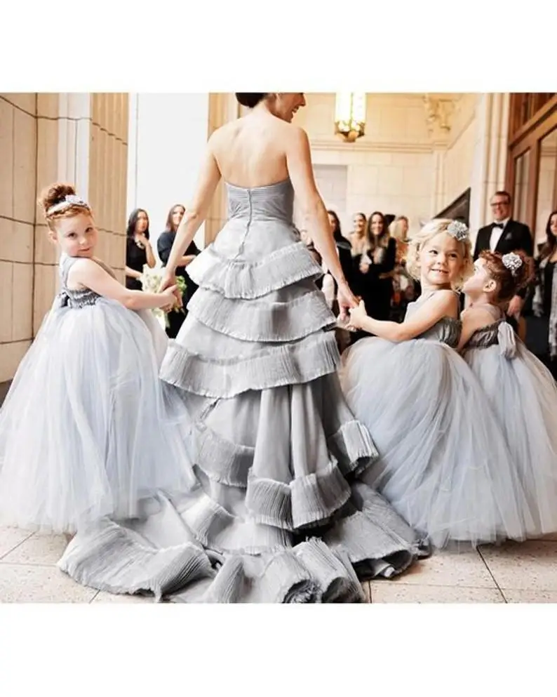 Серая Свадебная весенне-летняя осенне-зимняя детская одежда, детская свадебная одежда принцессы, костюм-пачка, платье-пачка для девочек