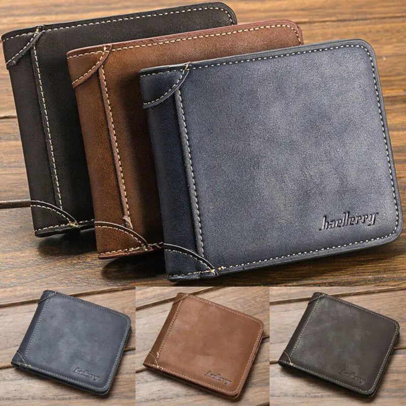 Для Мужчин's из искусственной кожи Кошелек двойного сложения кожаный бумажник ID держатель для карт монет Кредитная карта кошелек с чековой книжкой короткий клатч, бумажник мужской этих денег сумка