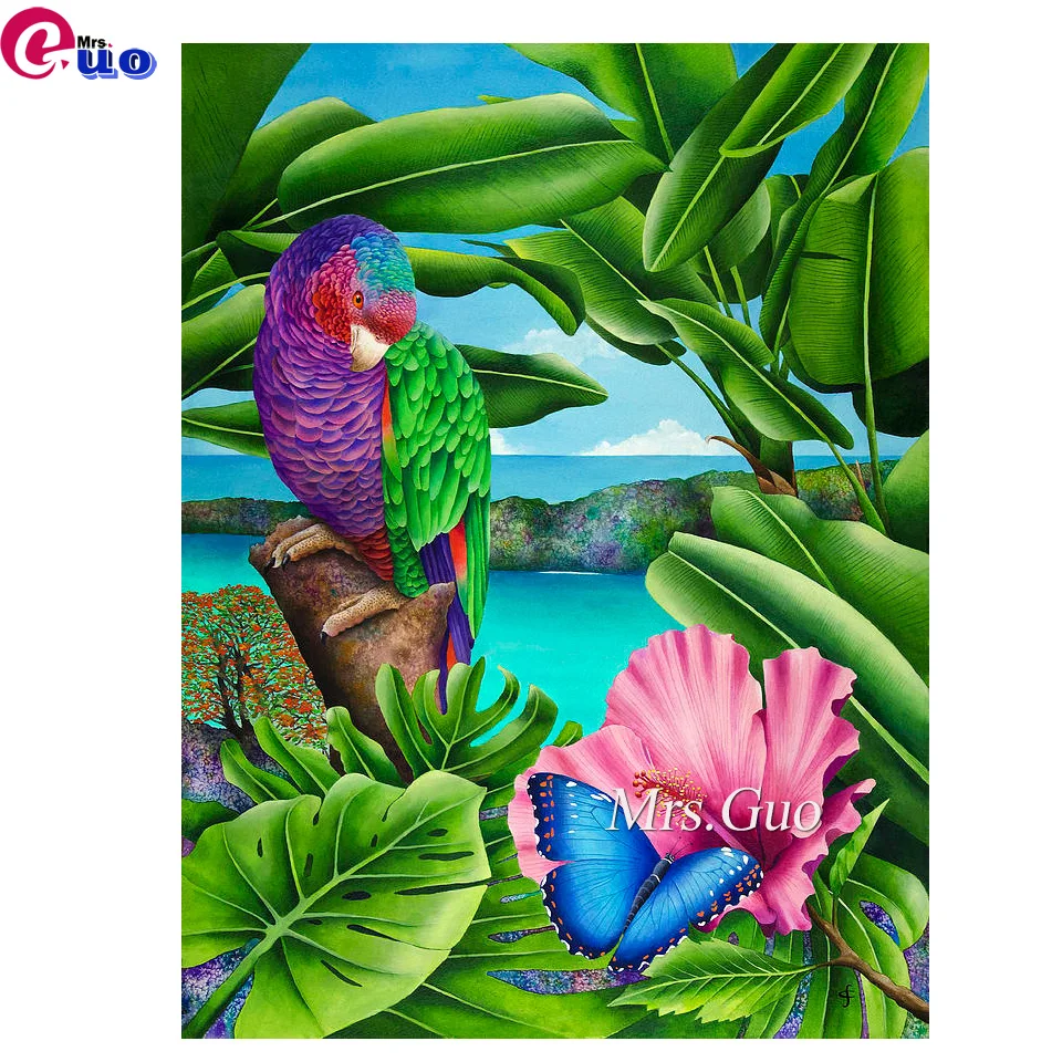 Бабочка, попугай, Зеленый лист, алмазная живопись, вышивка крестиком, цветок, полная дрель, мозаика, украшение дома, вышивка, ручная работа, подарок